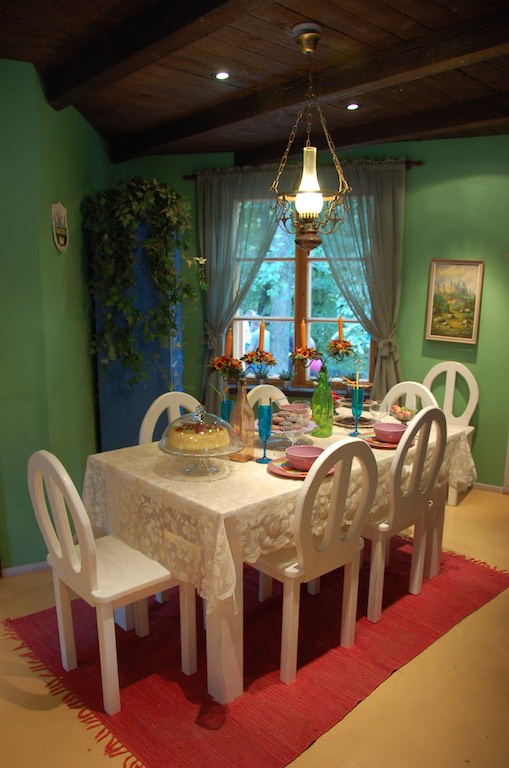 a potem zajrzeliśmy do wnętrza. Na dolnym piętrze mieściła się kuchnia i jadalnia, wyżej gabinet Taty Muminka a na samej górze pokoje Migotki i Muminka. Wszystkie pomieszczenia idealnie wysprzątane, pewnie to zasługa mamy Muminka.