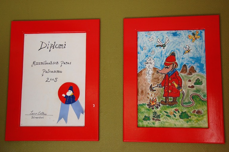 Obok domku znajdowała się remiza strażacka, Muminka Strażaka niestety nie było, ale na ścianach wisiały jego dyplomy, które oglądnęliśmy z podziwem.