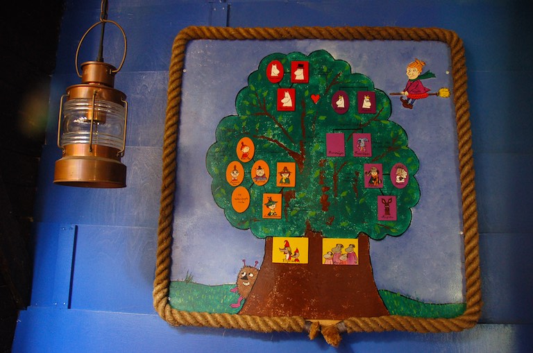 Pierwszym domkiem na wyspie jest poczta. Wypełniona po brzegi pocztówkami z bajki i pamiątkami z wizerunkami Muminków. Stąd również można wysłać kartkę, bo jak na prawdziwą muminkową pocztę przystało, jest w niej Muminek listonosz, który dostarczy każdy list.