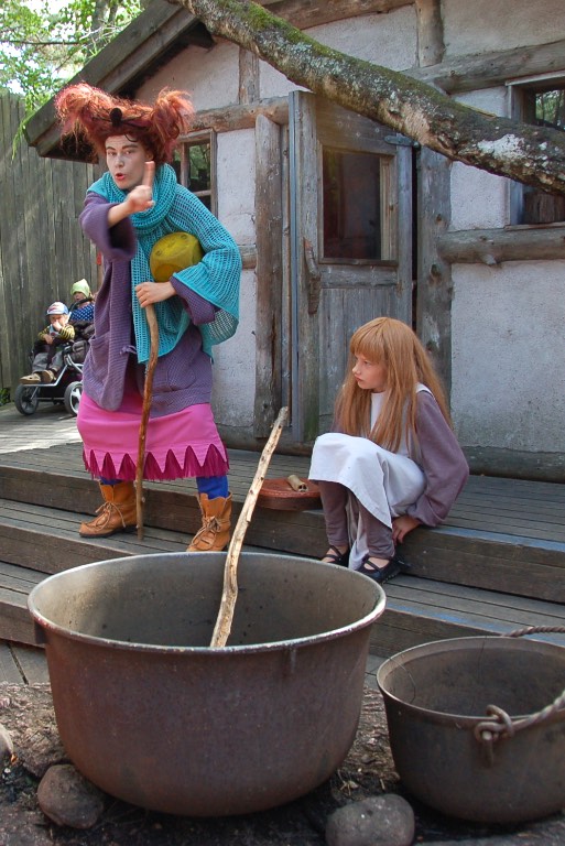 Po konkursie podreptaliśmy dalej. Natrafiliśmy na wiedźmę, która mieszała w kotle i opowiadała coś z przejęciem. Obok jej chaty znajdował się labirynt, który okazał się dość przerażający. Może to właśnie o nim rozprawiała wiedźma grożąc raz po raz laską.