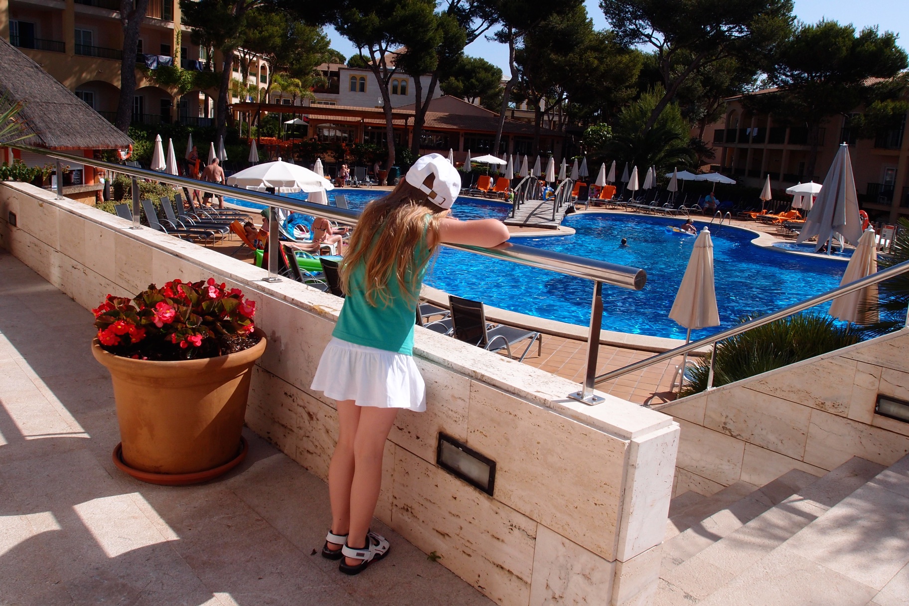 Przylecieliśmy wcześnie rano i już po śniadaniu korzystaliśmy z bogatej ofery hotelu. Mieszkaliśmy w Cala Mesquida Resort & SPA. Hotel podzielony był na trzy części. Wybraliśmy część oddaloną o około 300 metrów od morza, ale za to z prywatnym basenem. Rewelacyjne miejsce. Co prawda od lotniska oddalone o godzinę jazdy samochodm, jednak długa, szeroka i piaszczysta plaża warta była tego by pokonać trasę z dziećmi.
