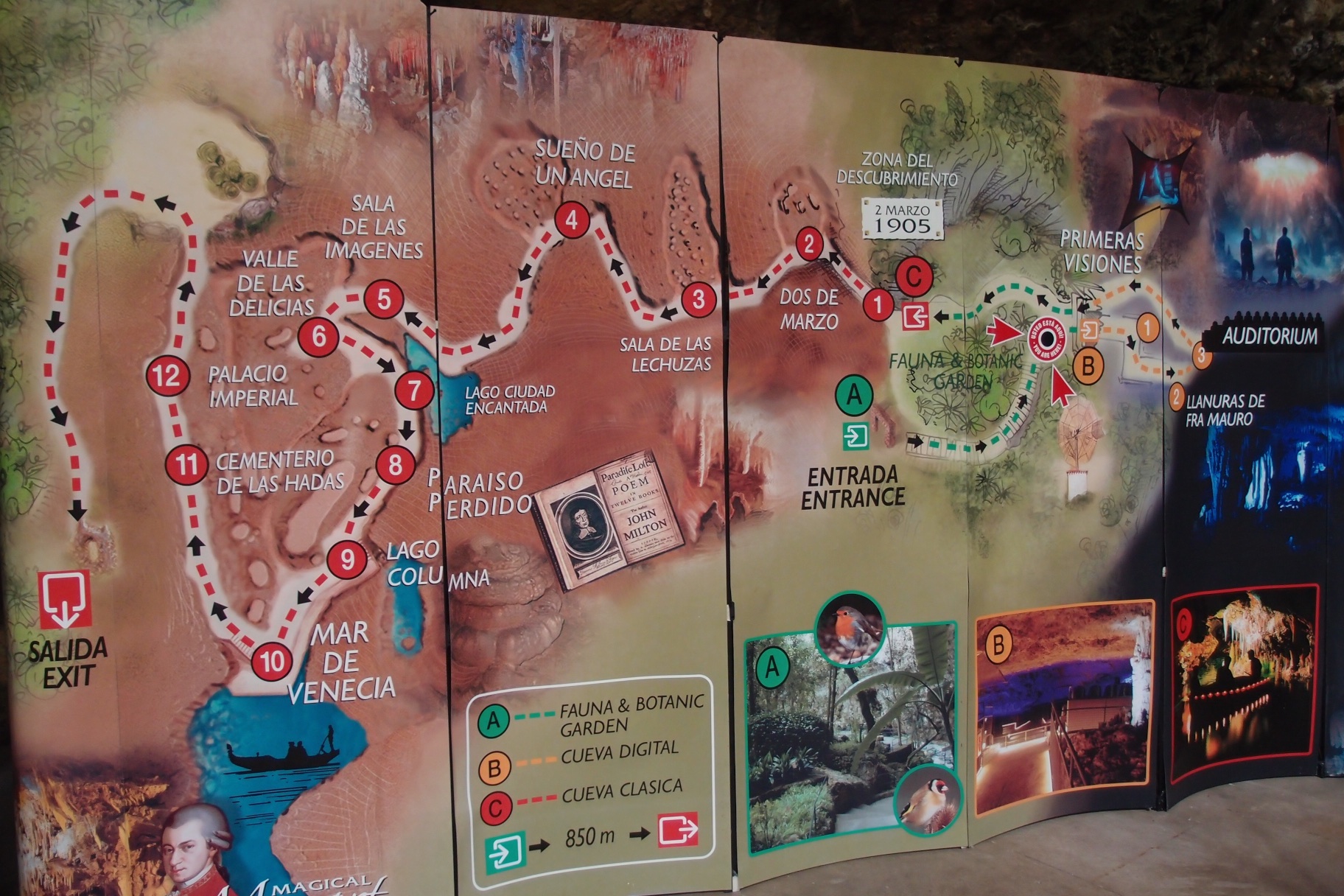 Smocze jaskinie w Porto Cristo naprawdę warto zobaczyć. Pod ziemią odbywają się projekcje filmów o Juliuszu Verne. Dzieci z dużym zainteresowaniem oglądały wyświetlane na skałach filmy. Niby pomysł bardzo prosty a jednak nigdzie czegoś podobnego nie widzieliśmy. Spacer jaskinią nie był długi, ale co kilkadziesiąt metrów na zwiedzających czekała jakaś atrakcja. Na koniec na tafli podziemnego jeziora oglądaliśmy przedstawienie z parą kochanków na łodzi. W tle słychać było muzykę, a całość uzupełniały kolorowe refleksy projektowane na ścianę.