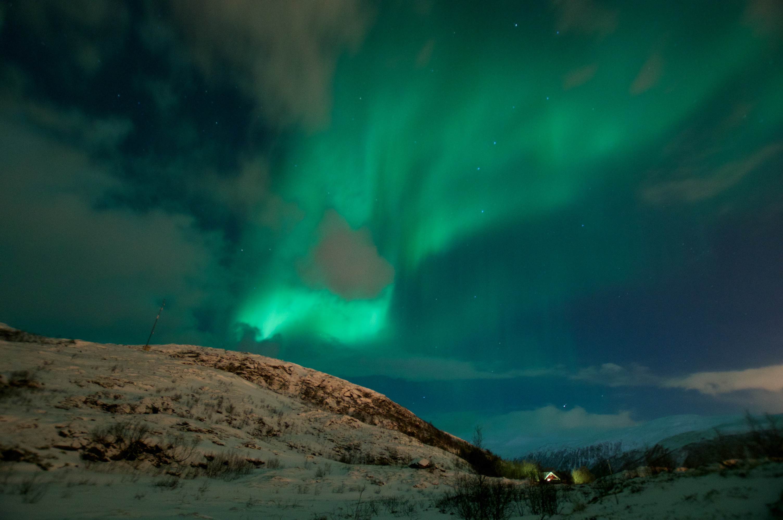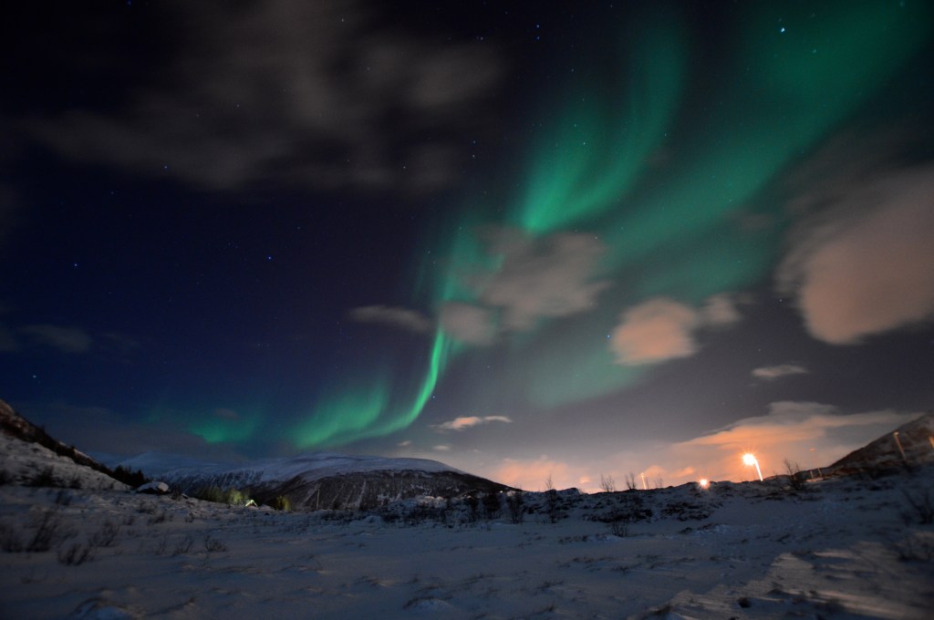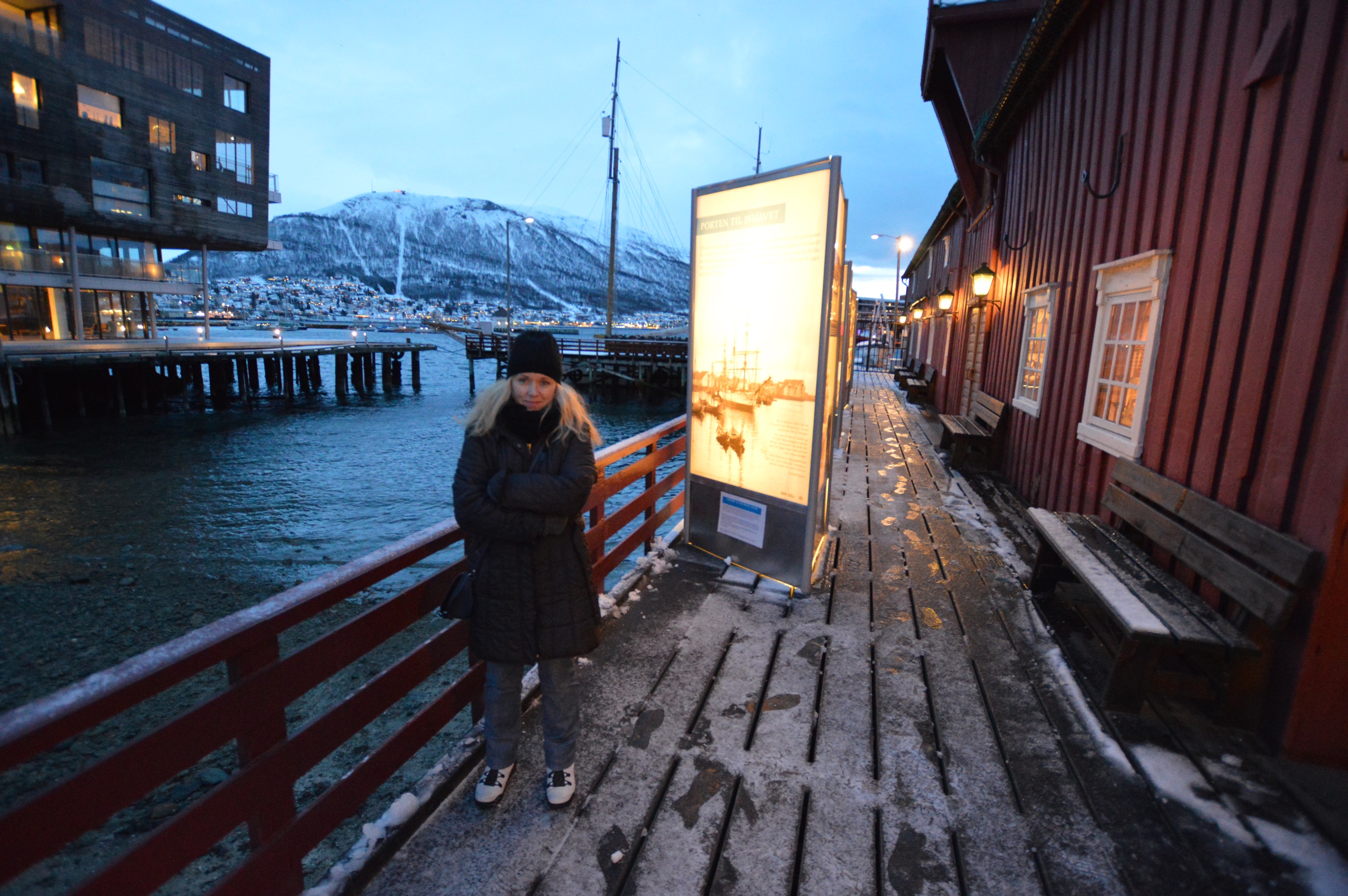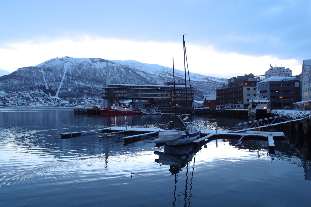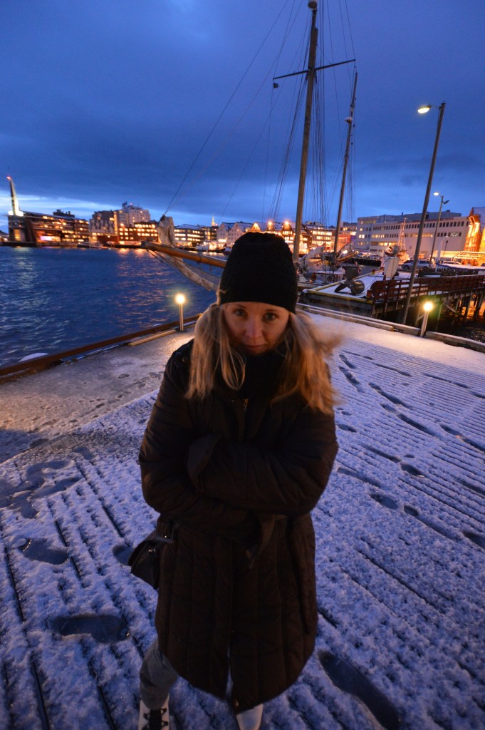 Wylądowaliśmy u bram Arktyki , w Tromso, które nie okazało się zbyt mroźne jak na tą porę roku co zawdzięcza swemu położeniu. Port lotniczy w Tromso to jeden z najdalej wysuniętych na północ portów Norwegii. Miasto jest położone 350 kilometrów za północnym kołem podbiegunowym. W styczniu panuje Noc Polarna, słońce widać przez około dwie i pół godziny dziennie. Norwegowie zdaje się świetnie sobie z tym poradzili, po zmroku oświetlają mieszkania i zakamarki ulic lampami i świecami. Dla nas było jednak trochę przygnębiające, choć dzięki tym ciemnościom mogliśmy podziwiać pełen majestat Zorzy, która zrekompensowała wszystkie utrudnienia.