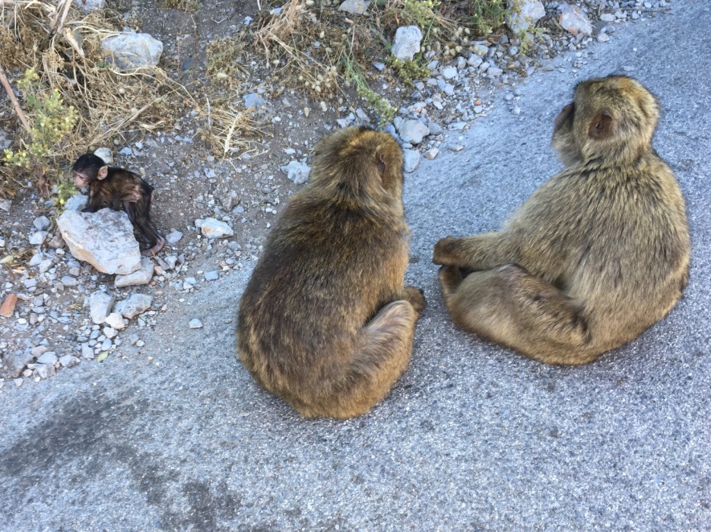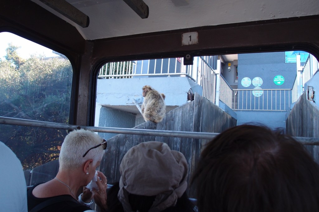 Pierwszy szok czekał na nas tuż po wjeździe na górę. Czołowej szyby wagonika nie było co szybko wykorzystały grasujące na szczycie Makaki. Nie są to sympatyczne zwierzątka. Zanim wagonik się zatrzymał, małpy zdążyły ukraść jednej z turystek telefon, który jedynie dzięki szybkiej ocenie sytuacji i refleksowi udało się jej odzyskać. Okazało się, że cała góra i tarasy widokowe są opanowane przez małpy. Nie dajcie się zwieść miłym futrzakom. Agresywnie opróżniają każdy plecak jeśli tylko coś je zainteresuje. Wplątują małe paluszki we włosy a potem ciągną ze wszystkich sił świetnie się przy tym bawiąc. Byliśmy świadkiem jak jedna „słodka” małpka w rozbrajający sposób ściągała turystce kolczyki z uszu i byłoby to nawet zabawne gdyby nie strach i ból jaki przy tym sprawiała właścicielce kolczyka.