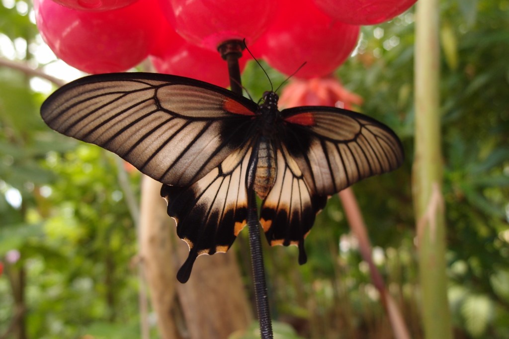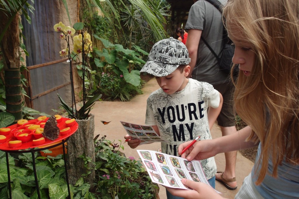 Niedaleko mieściła się piękna motylarnia. Ogród po brzegi wypełniony był zielenią a pomiędzy nią latały różnobarwne motyle. Duże, małe … szare, kolorowe… Latały wszędzie a za nimi cała banda dzieciaków. Tutaj również zadbano o brak nudy i tuż po wejściu dzieci dostały ołówki z kartą, na której wydrukowano motyle jakie można spotkać w motylarni. Zadaniem dzieci było odszukać po jednym z każdego rodzaju.