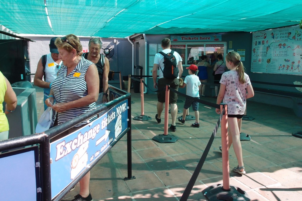 Wielu turystów, prawdopodobnie prze te korki, decyduje się na pozostawienie auta po hiszpańskiej stronie i na przejście przez pas startowy piechotą. Zdaje się, że nasze wakacyjne lenistwo tym razem było naszym sprzymierzeńcem. Nie dość, że pas przejechaliśmy w kilka minut, to jeszcze udało się nam zaparkować samochód tuż przy kolejce na szczyt. Wszystkie przewodniki zgodnie podają, że do wagonika prowadzi kolejna, również bardzo długa kolejka 🙂 więc nasze zdziwienie było przeogromne gdy okazało się, że przed nami jest jedynie kilka osób.