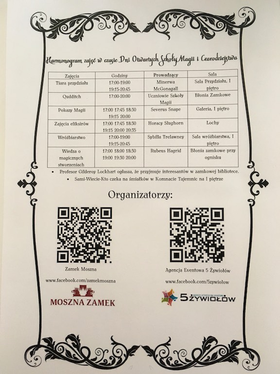 Gdy w tle występowała historia Harry-ego Pottera wyobraźnia dziecięca działała jak błyskawica i nie mogliśmy ominąć zabawy! Zabawy w Szkole Magii i wróżbiarstwa. Pomysł o tyle ciekawy, że wszystko odbywało się od wieczora do godzin nocnych z późniejszym noclegiem oczywiście w zamku 🙂