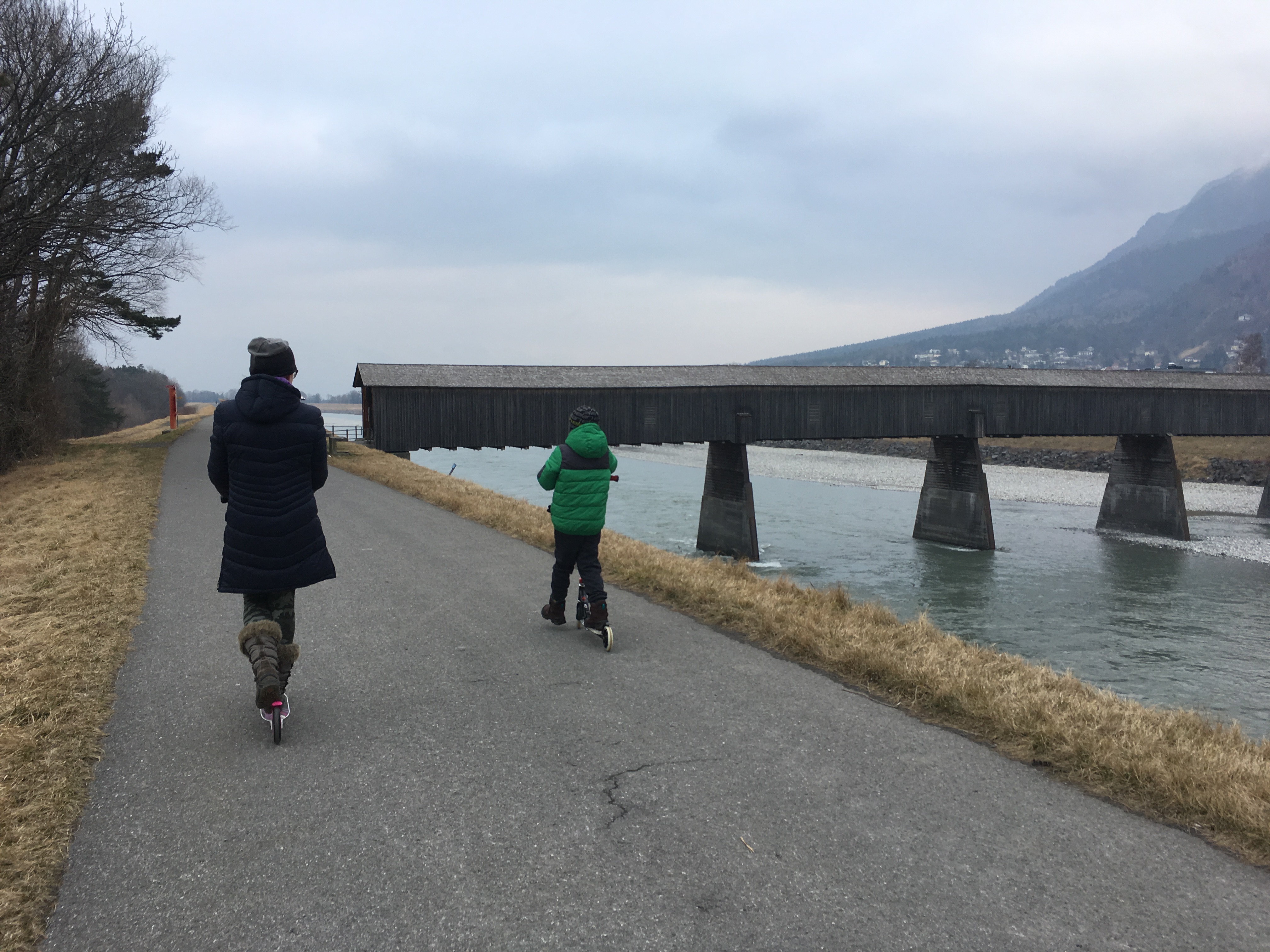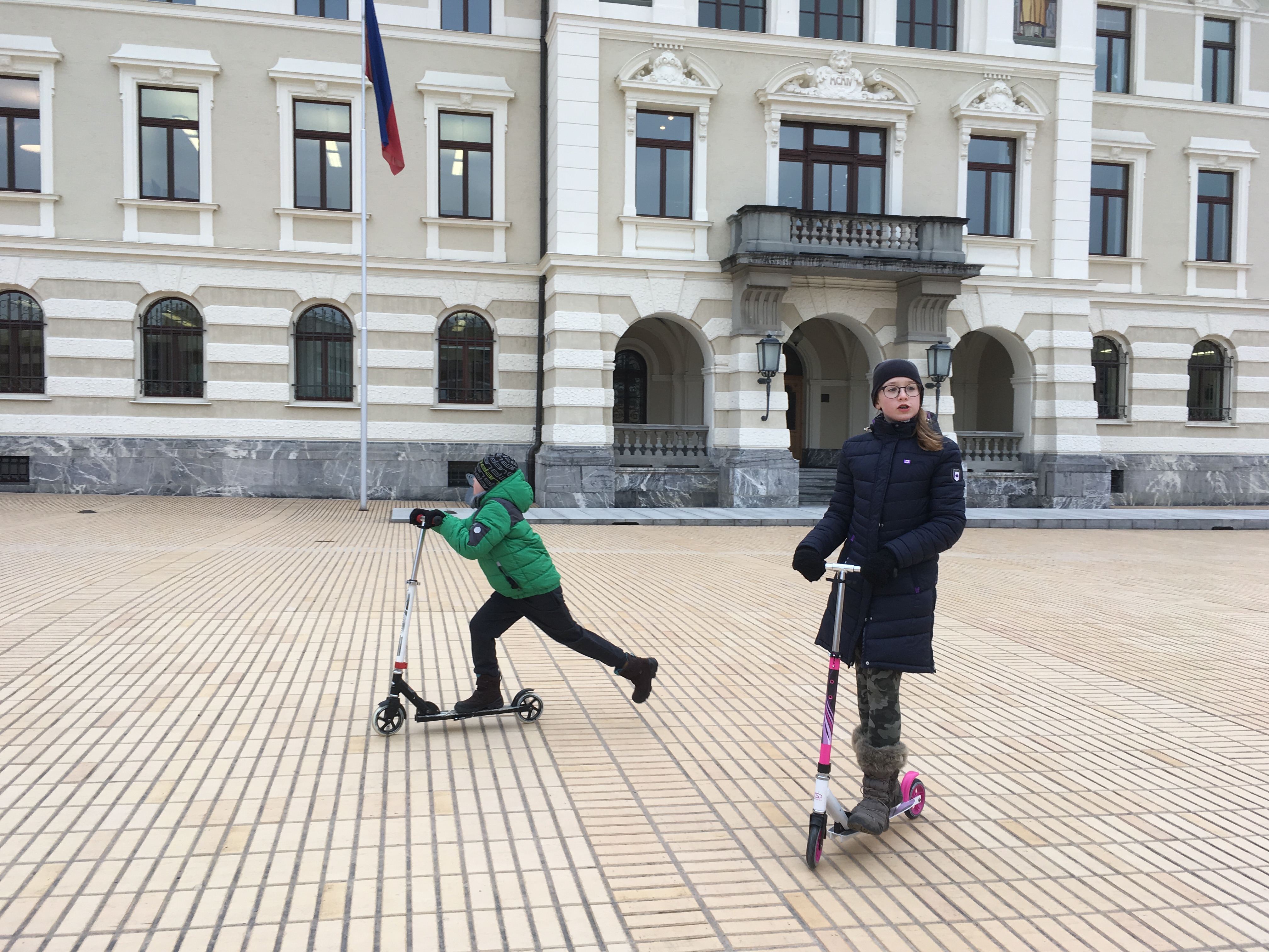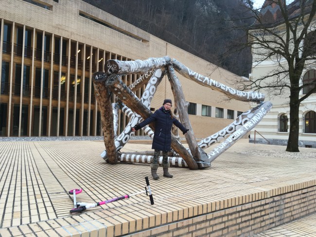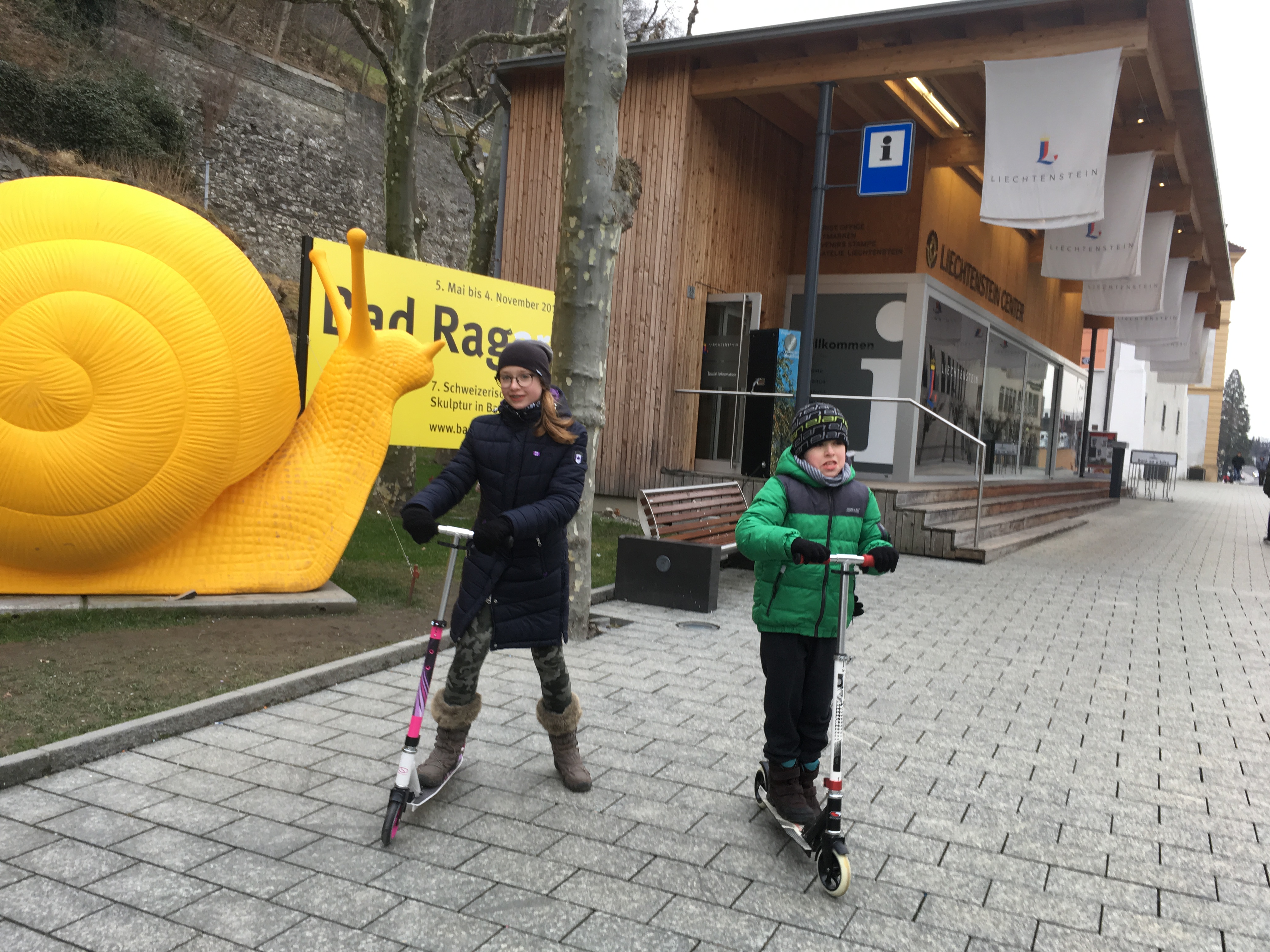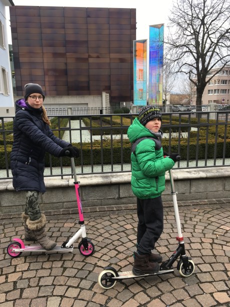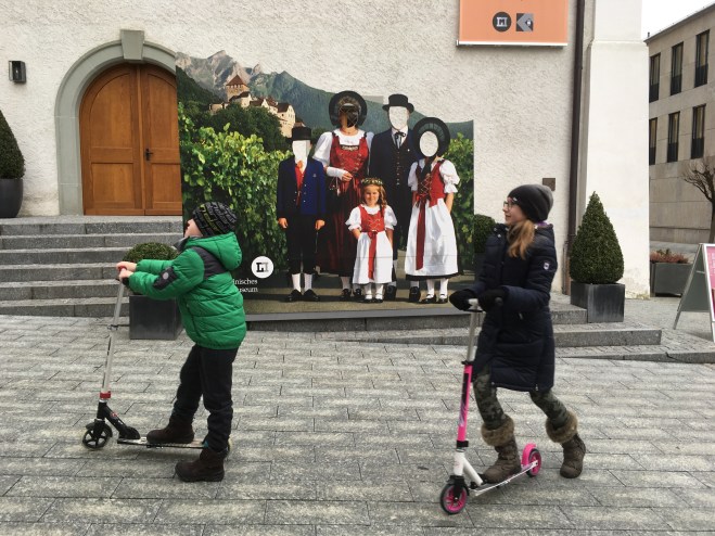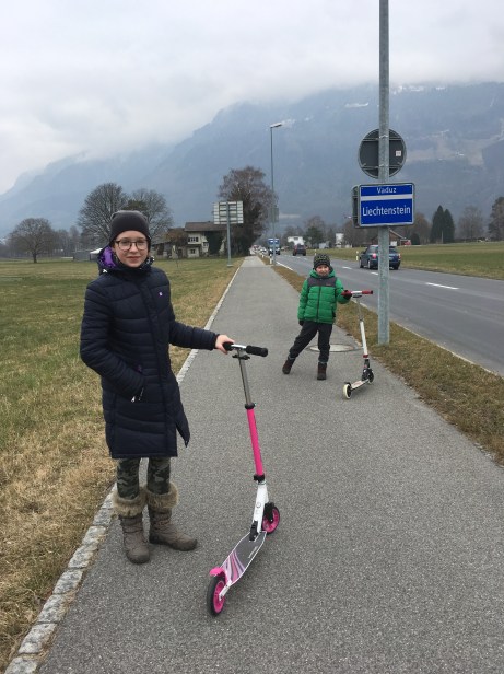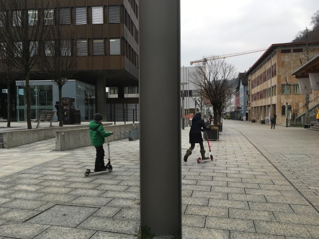 Ze Szwajcarii za sąsiednią granicę śmignęliśmy na hulajnogach. Przydały się na małe nogi, że hoho! Jednak dobrze, że pomyślałam o nich jeszcze w Polsce. Dzięki hulajnogom dzieci ani razu nie narzekały na ból nóg czy znudzenie. Zwiedzanie Vaduz odhaczyliśmy po trzech godzinach.