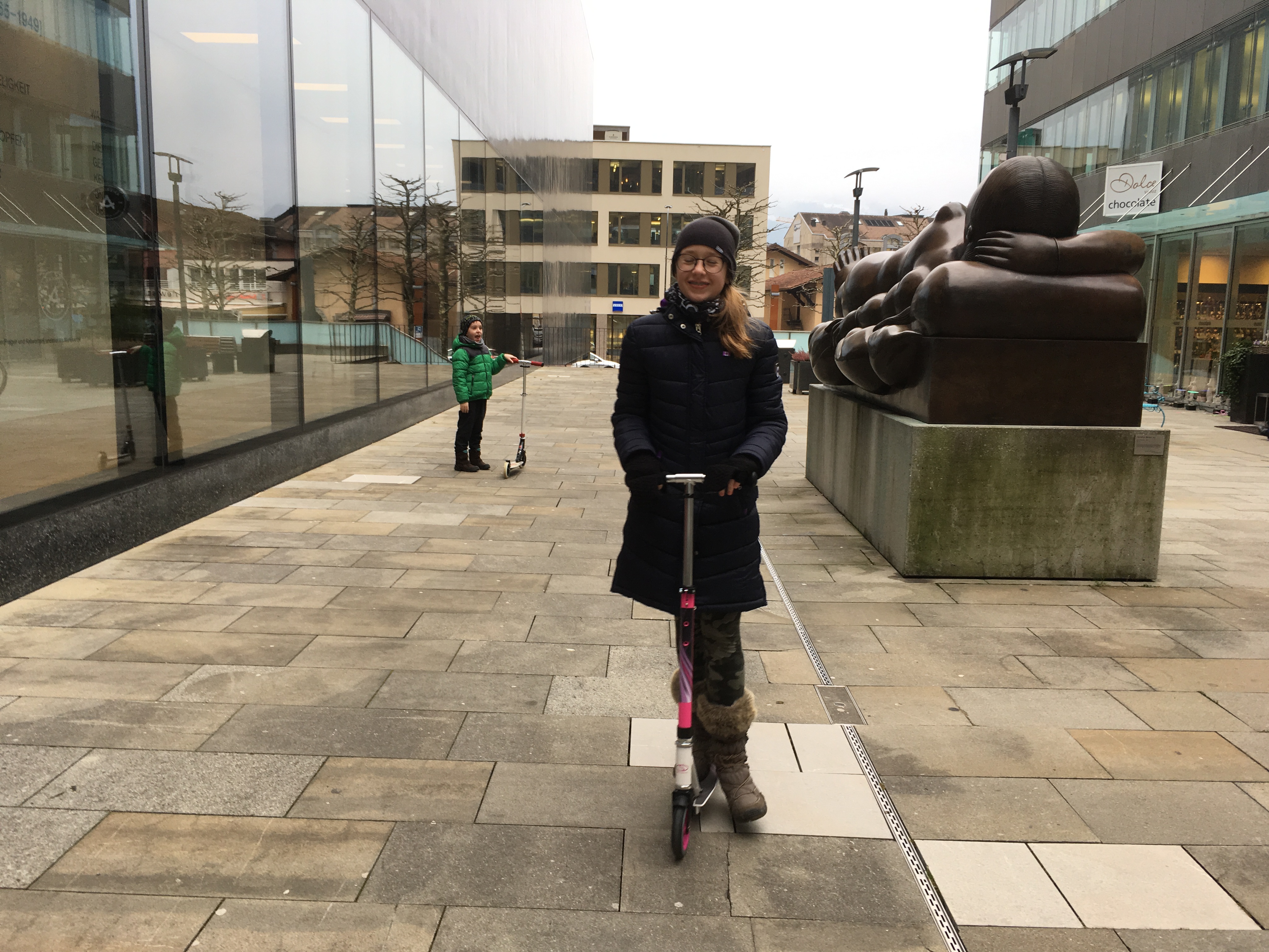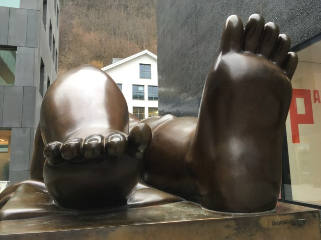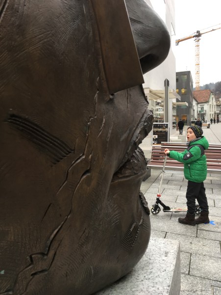 Ulice Vaduz naszpikowane są różnego rodzaju sztuką. Myślałam, że dzieci przejdą obok niej obojętnie a jednak nie 🙂