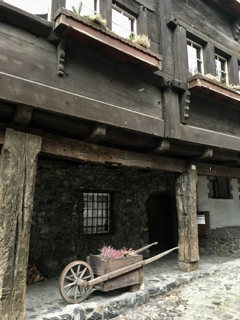 Miasteczko przeurocze. Wąskie uliczki, oryginalne drewniane konstrukcje domów, winnice i ten dawny duch sprawiał wrażenie jak byśmy przenieśli się w czasie. Niesamowity klimat. W tych dawnych zabudowaniach nadal mieszkają ludzie co jeszcze bardziej ciekawi.