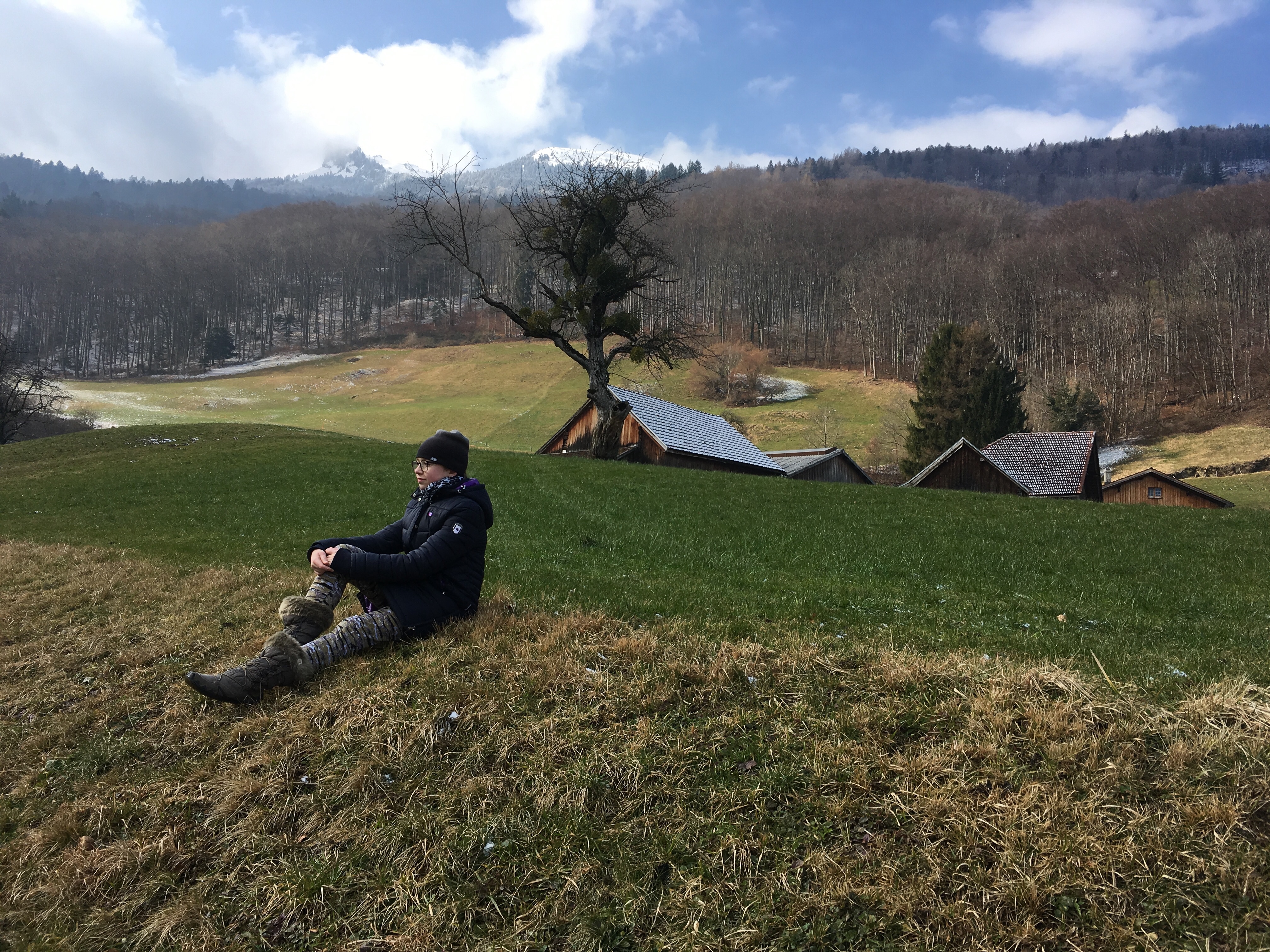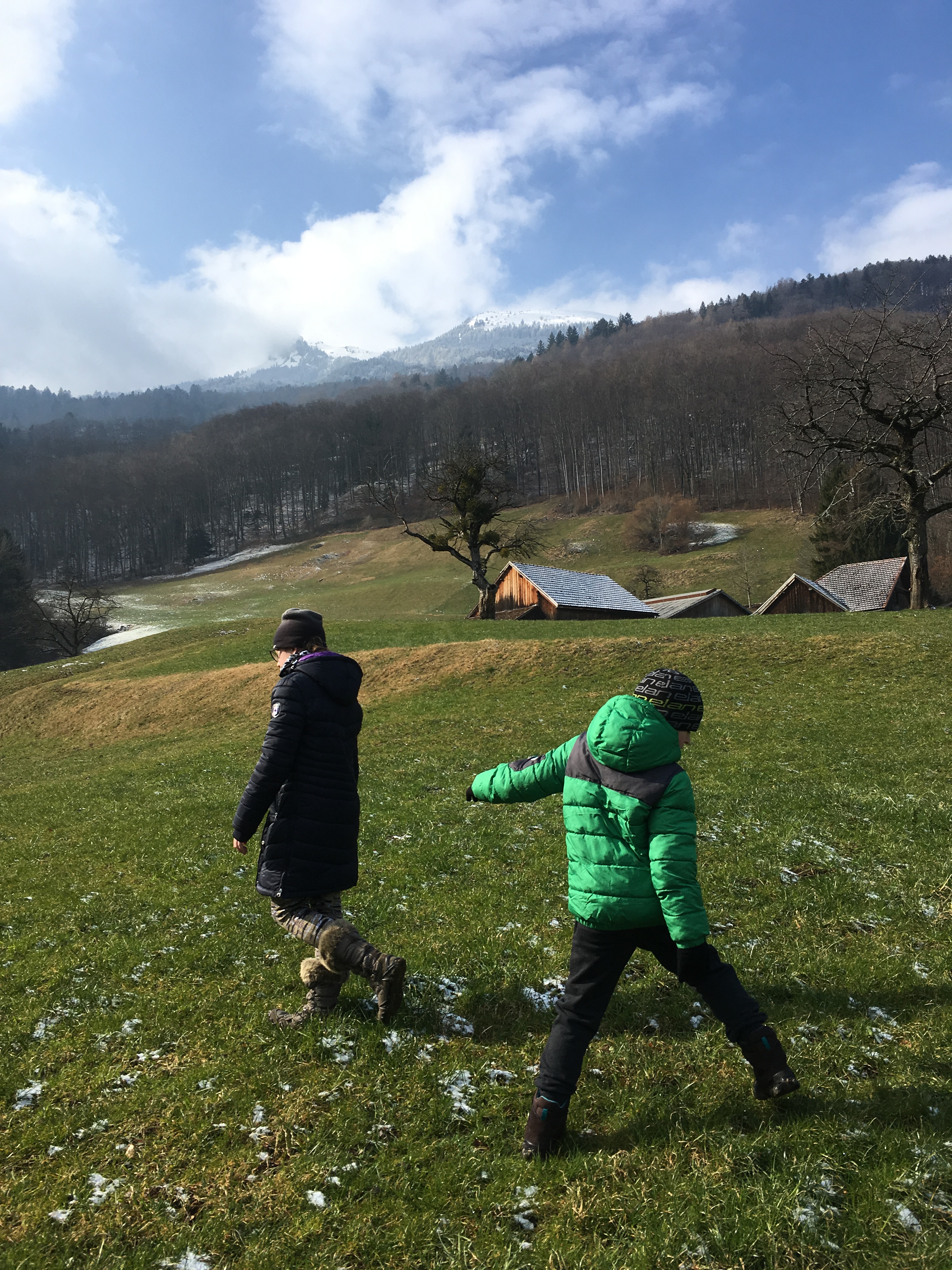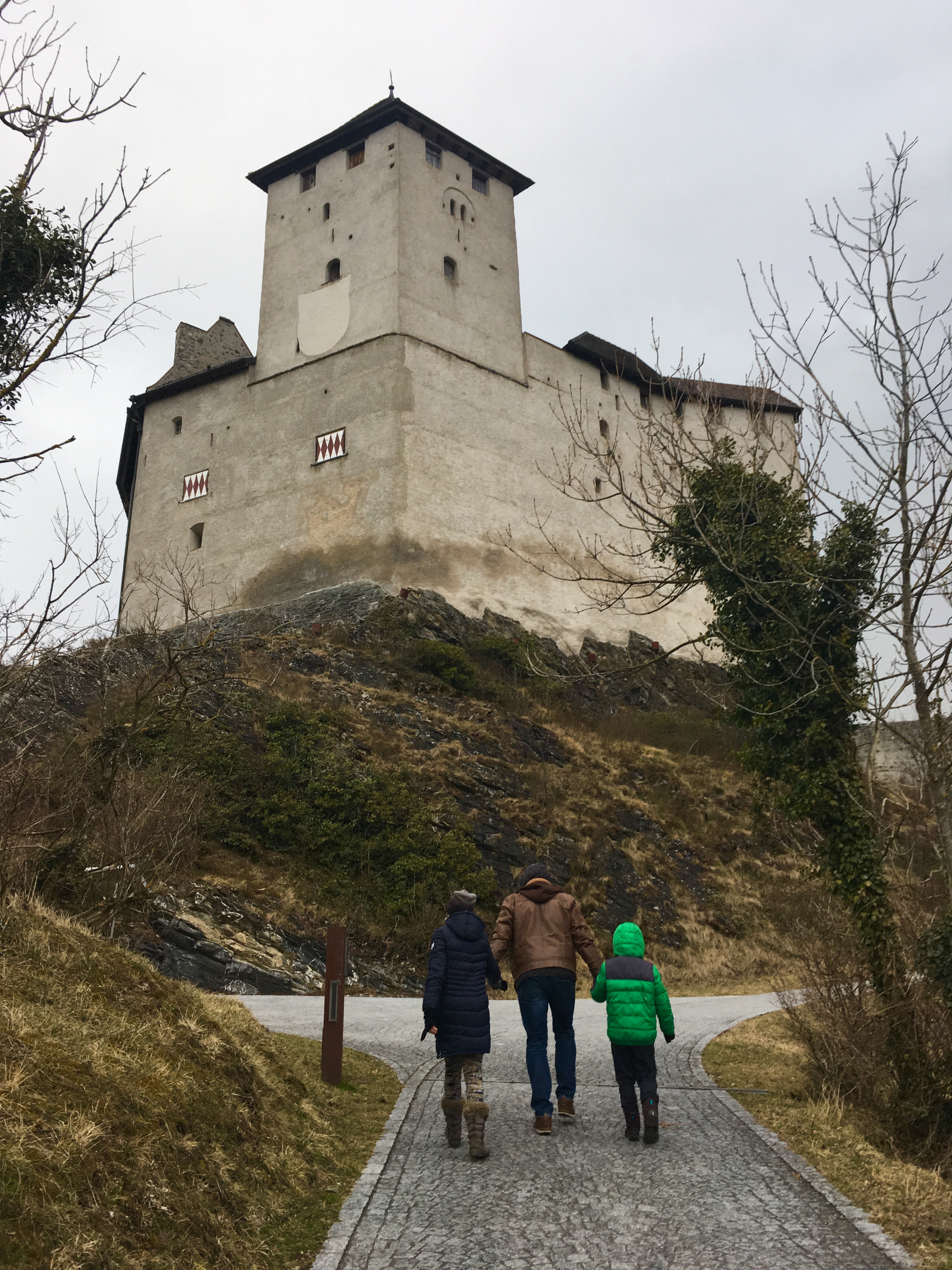 Po południu zmierzyliśmy się z jeszcze jedną górą. Weszliśmy na Burggutenberg. Zaczęło się chmurzyć i popadał drobny śnieżek, ale krótki spacer przed nocą dla dzieci akurat jest idealny.