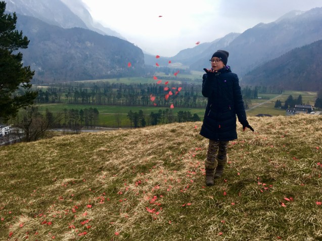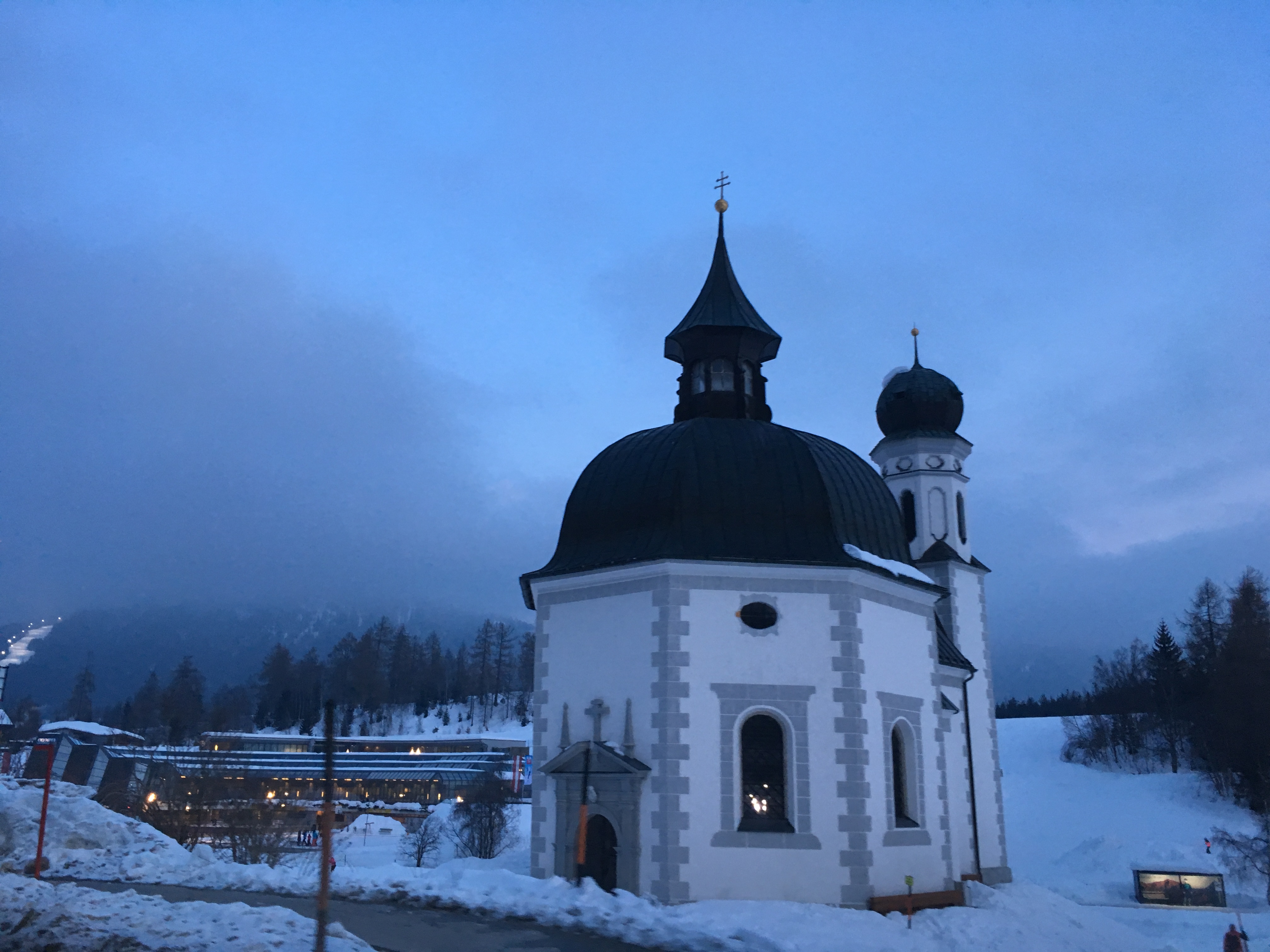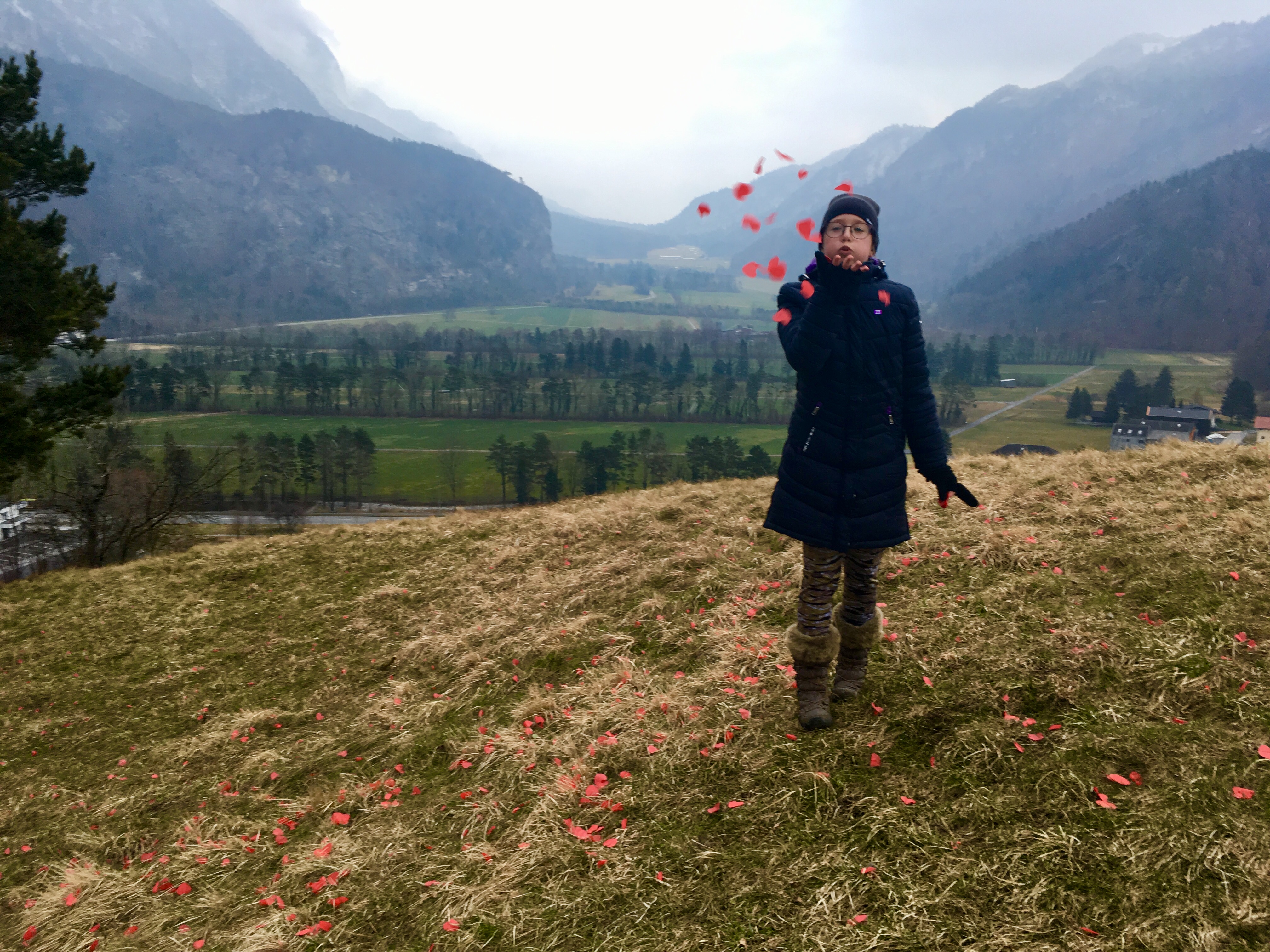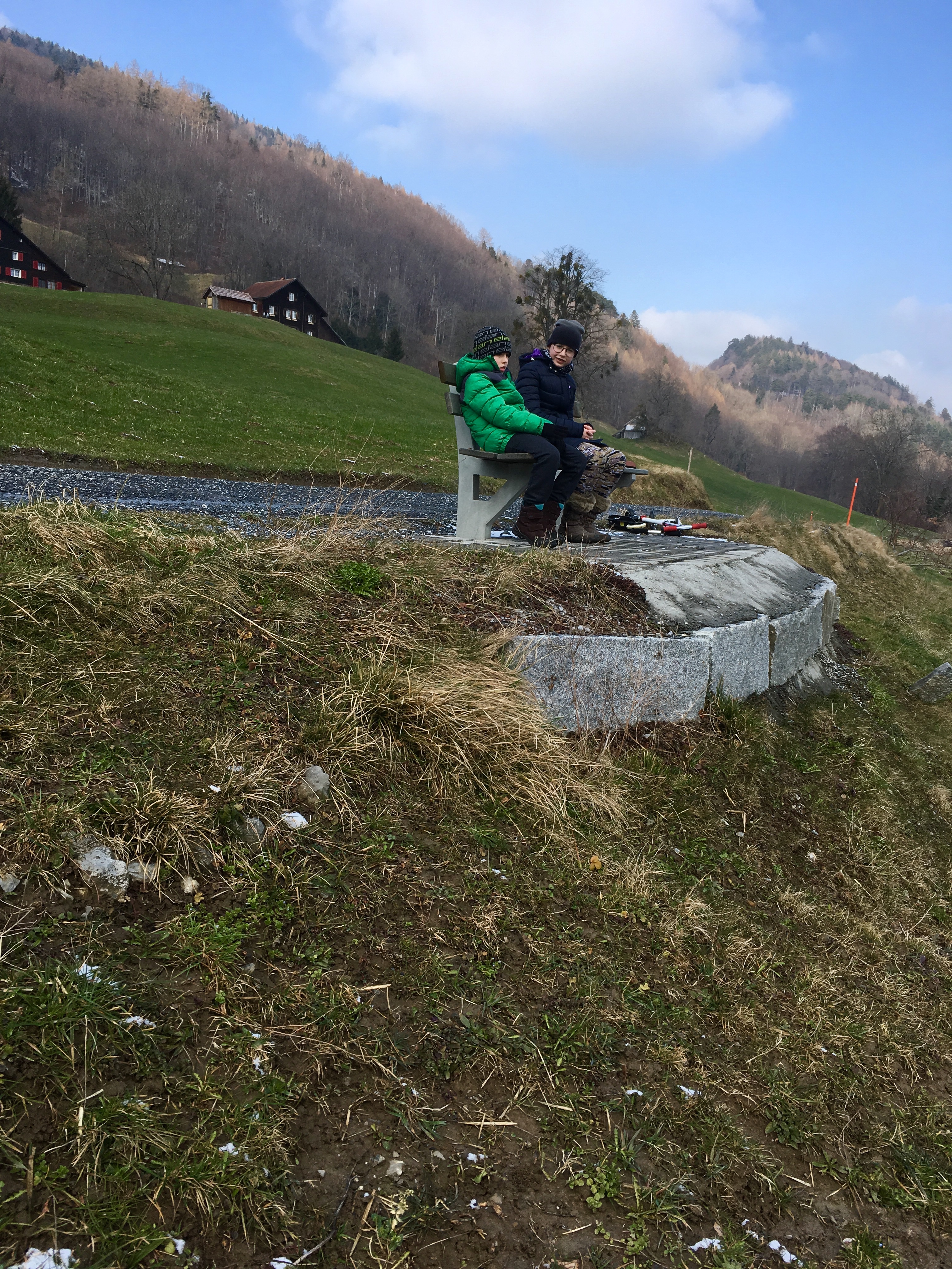 Po południu zmierzyliśmy się z jeszcze jedną górą. Weszliśmy na Burggutenberg. Zaczęło się chmurzyć i popadał drobny śnieżek, ale krótki spacer przed nocą dla dzieci akurat jest idealny.