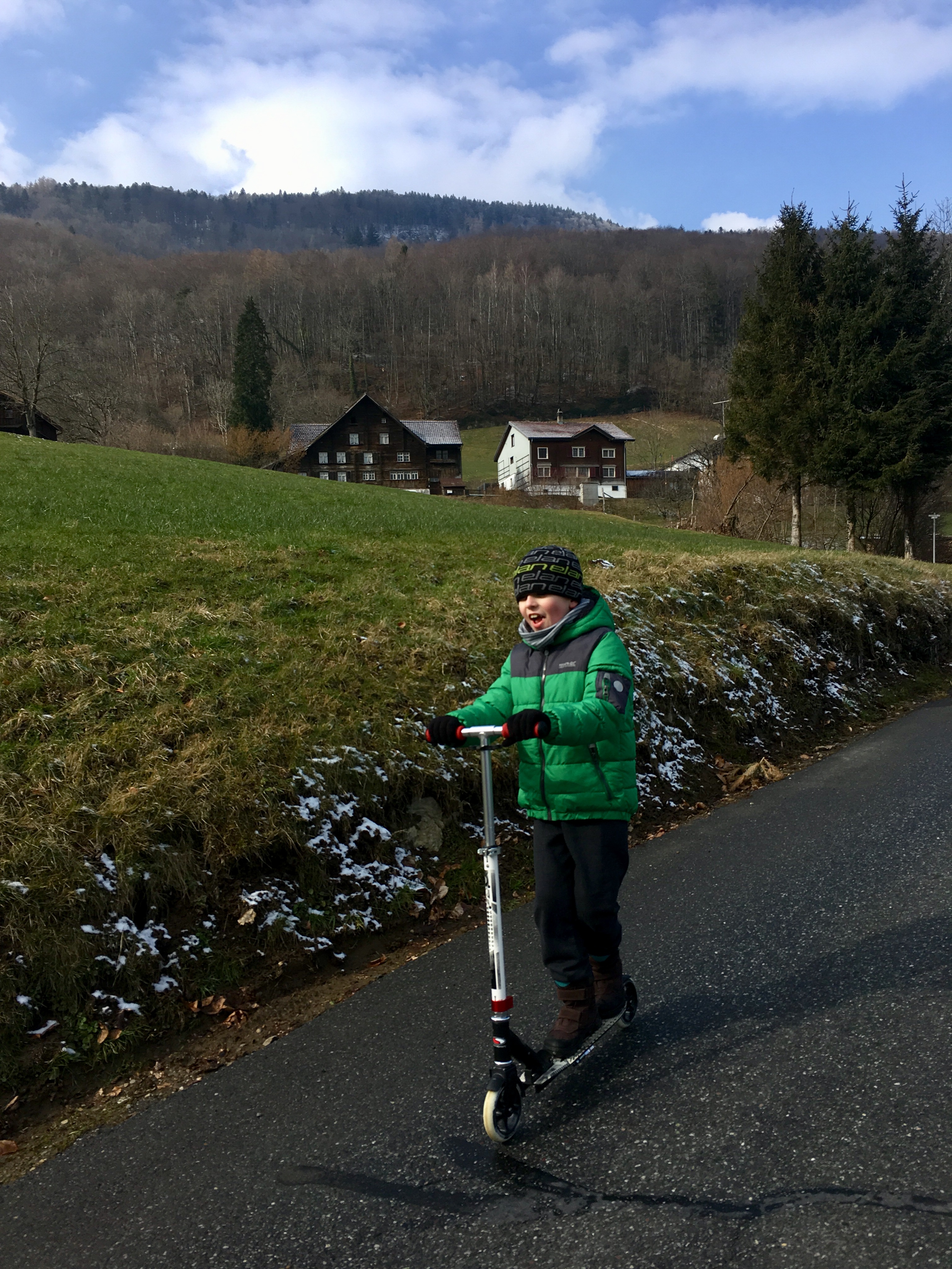 Korzystamy z zimowych ferii. Po intensywnym pierwszym tygodniu w butach narciarskich przyszedł znów czas na lenistwo i szwajcarską czekoladę. Ostatnio trzymają się nas same niezaplanowane przygody i tym razem droga do Buchs przygotowała nam psikusa. Tuż przed austriacką granicą, podczas poszukiwania telefonu w bagażniku samochodu, niepostrzeżenie wypadła nam kurtka z dokumentami. Szczęśliwi, po pół godzinie dojechaliśmy na miejsce i jakież było nasze zdziwienie, gdy wypakowawszy wszystko z auta odnotowaliśmy brak najważniejszej za granicą rzeczy – dokumentów. Powrót pod granicę austriacką okazał się konieczny. I tak sobie myślę po raz kolejny, że my mamy dużo szczęścia 🙂 bo okazało się, że kurtka leżała dokładnie w tym miejscu gdzie wypadła i czekała na nas otulona nocą. Ta noc zdaje się nam pomogła. Za dnia kurtki i dokumentów mogłoby tam już nie być. Tak więc rozpoczął się nasz pobyt w Szwajcarii. Nocleg w Wohntel jest jak zawsze dobrym rozwiązaniem gdy przyjeżdżamy późno w nocy. Karta wejściowa czeka na nas zawsze w skrytce i nigdy nie ma problemu z wejściem.