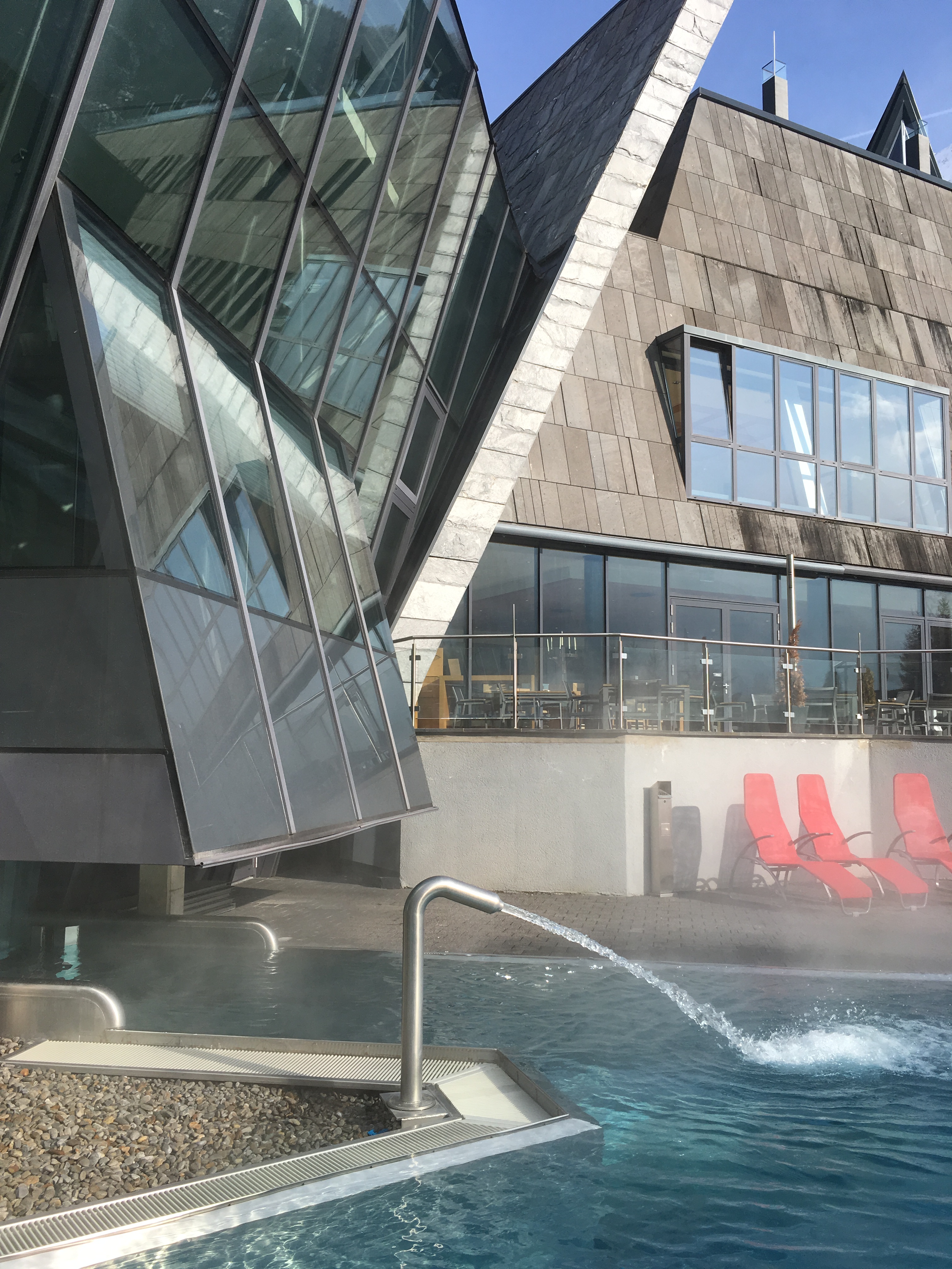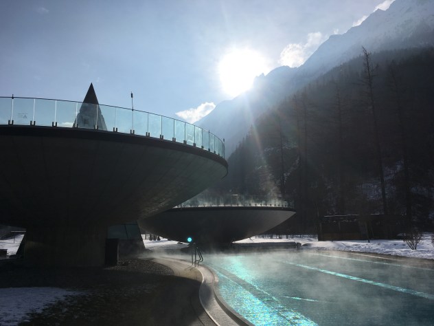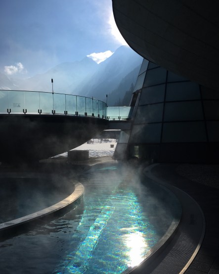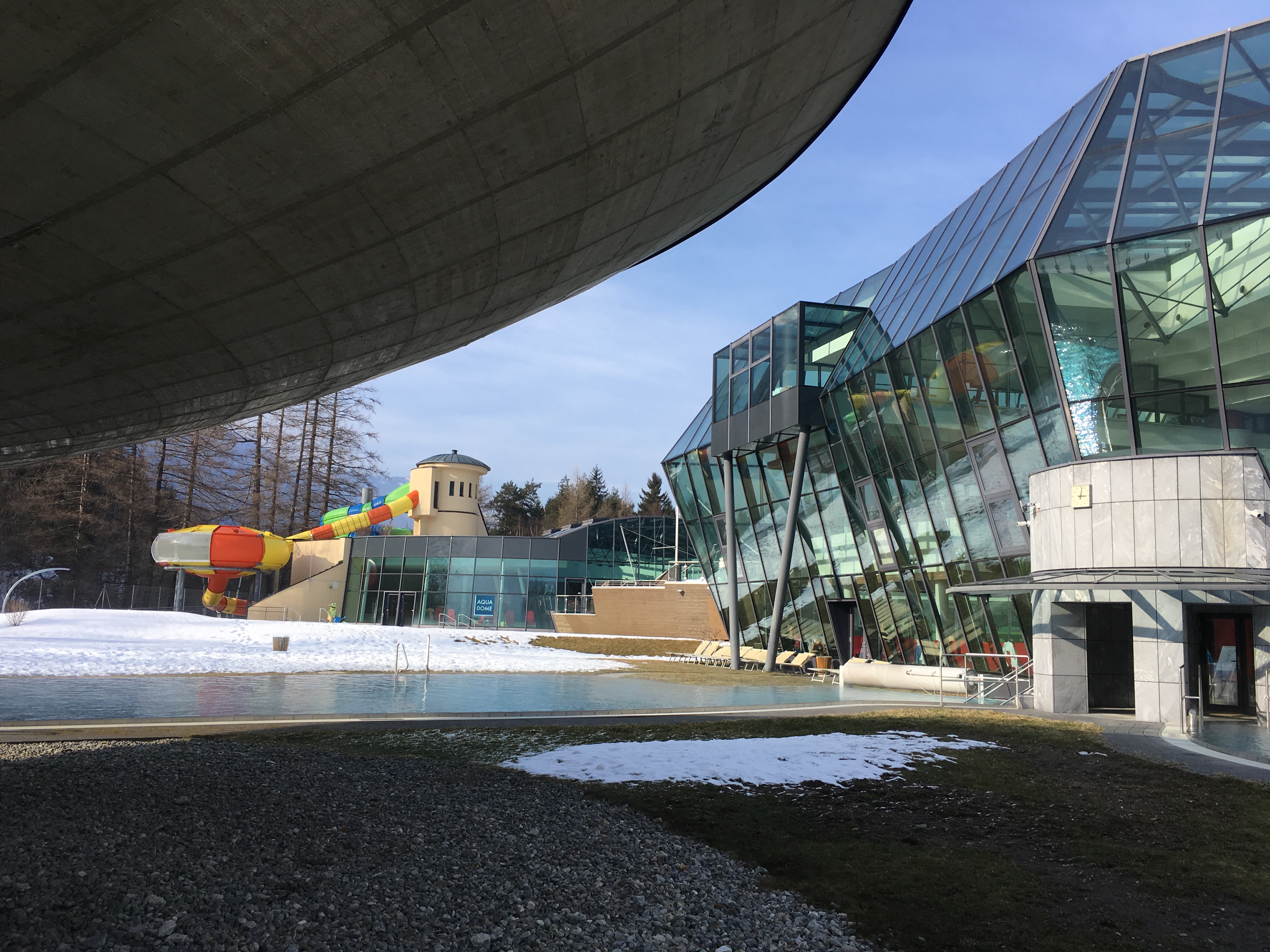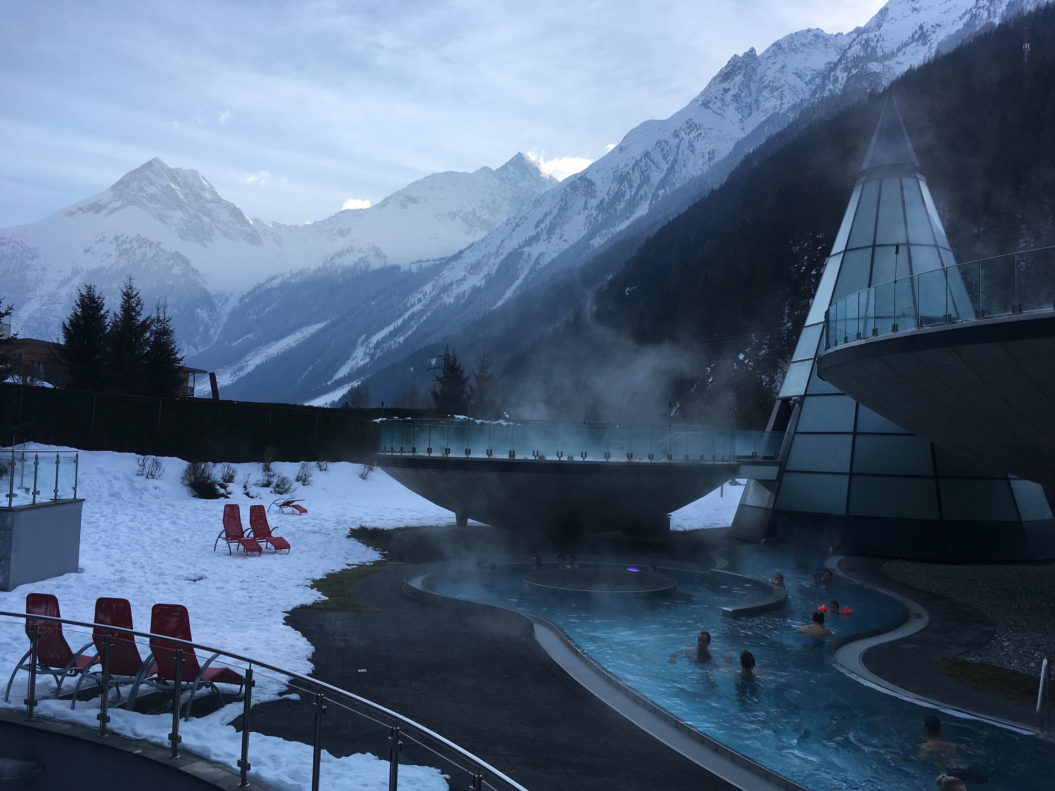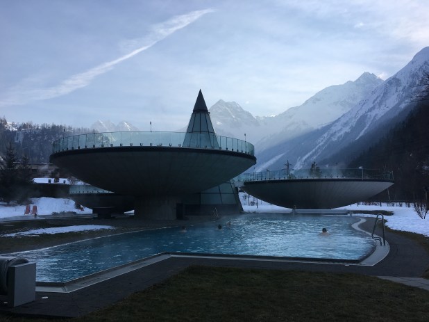 Tym sposobem dotarliśmy do term w Austrii. Miejscem, które warto odwiedzić jest Aqua Dome. Zawsze z przyjemnością tu wracamy odmoczyć stare kości 🙂 i nasycić oczy przepięknym widokiem na góry. Ymmmmm … błogi spokój.