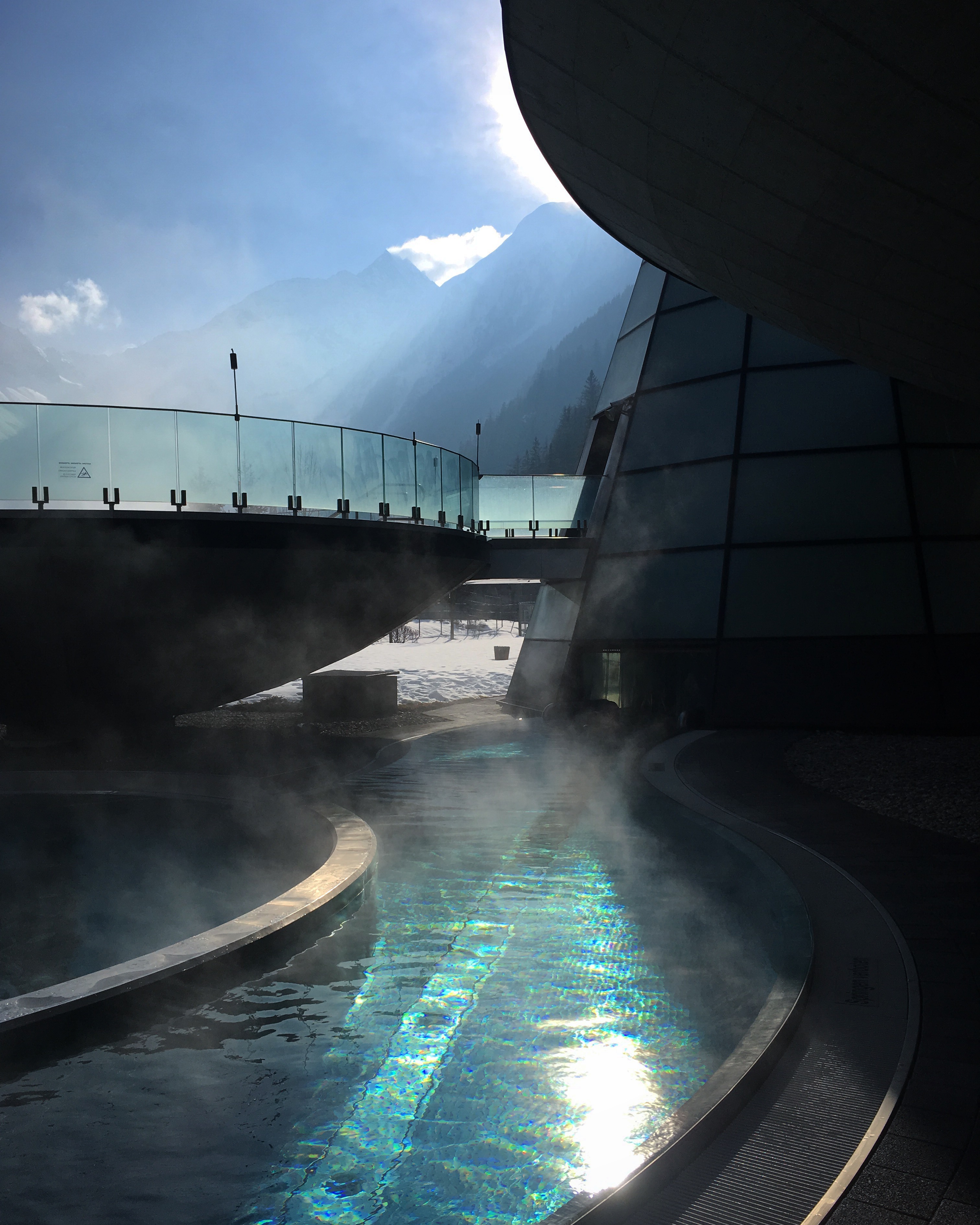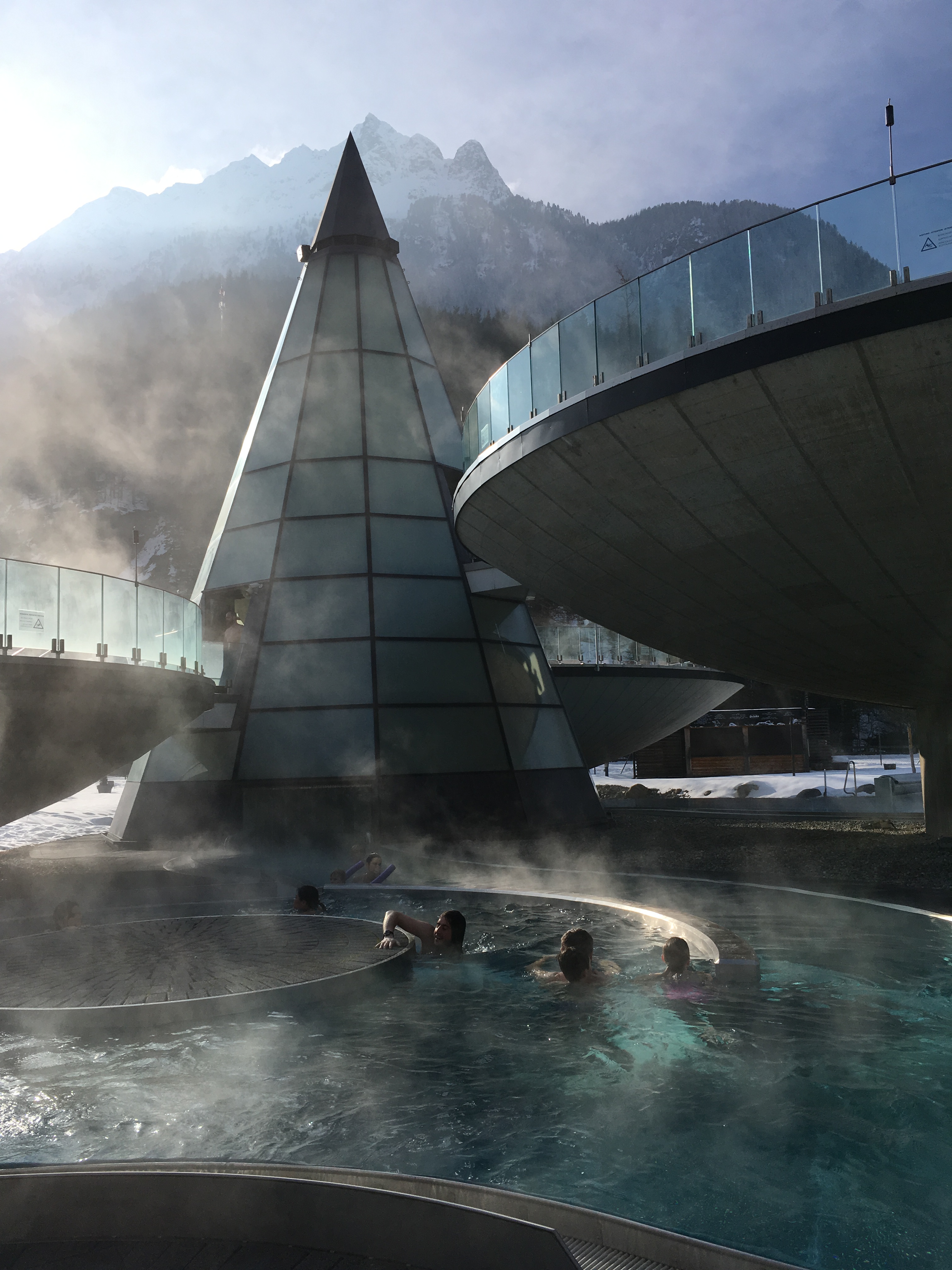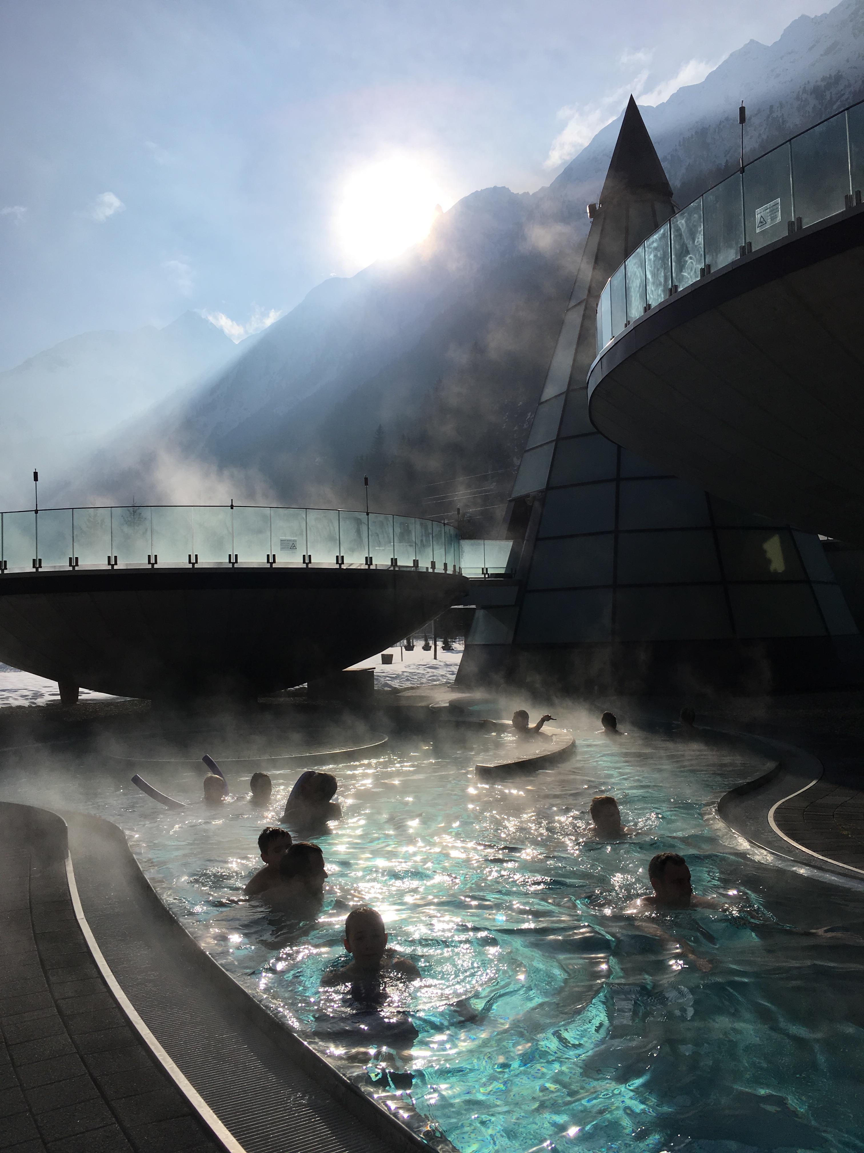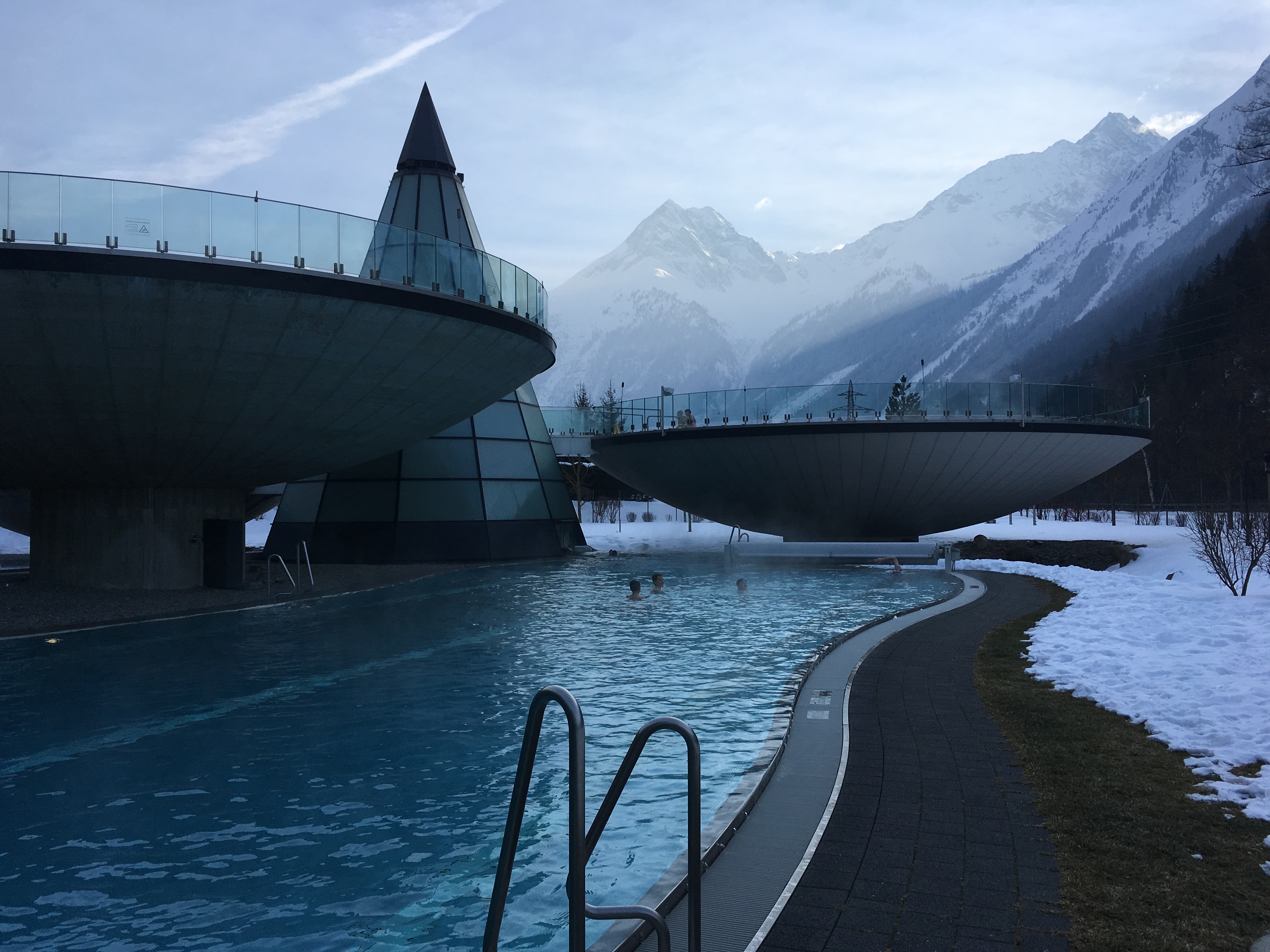 W drodze do Polski widok zaśnieżonych szczytów gór oczywiście nas mocno ucieszył. Taki widok zawsze potęguje szczęście w moim sercu. Nie było innej możliwości jak tylko zboczyć trochę z drogi i udać się na termy w dolinie Ötztal.