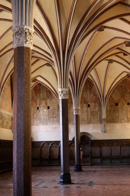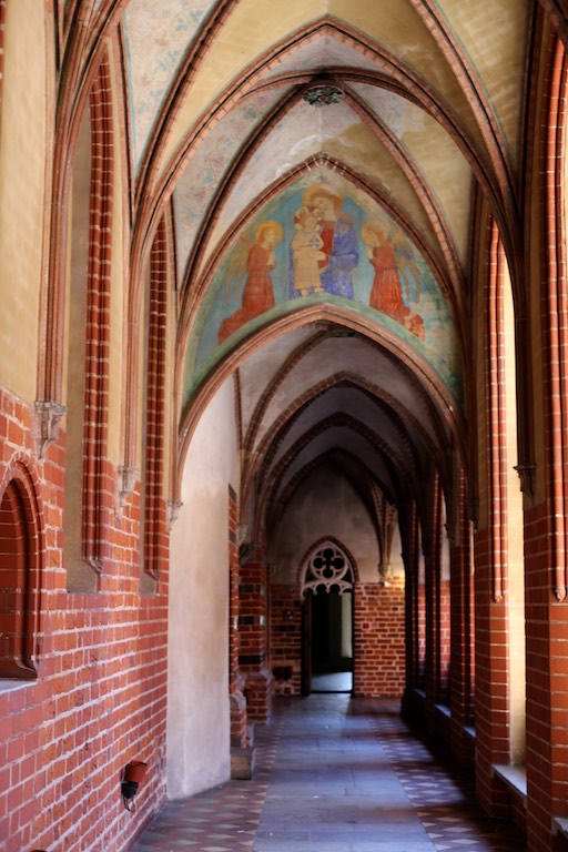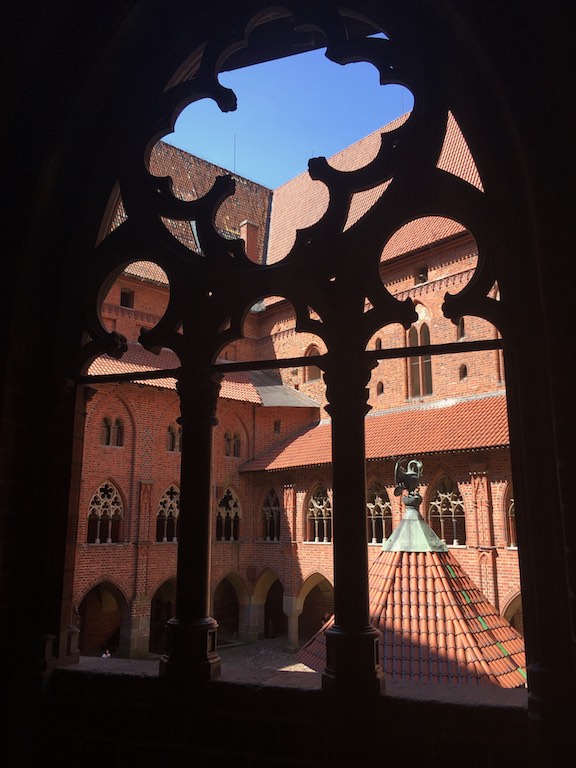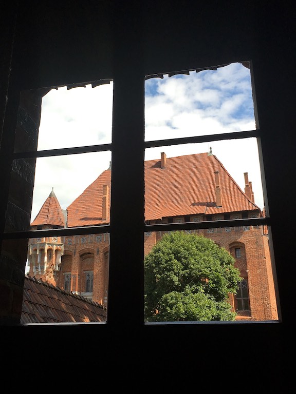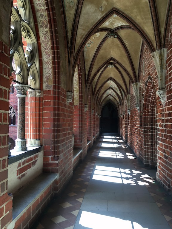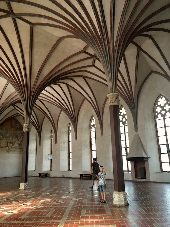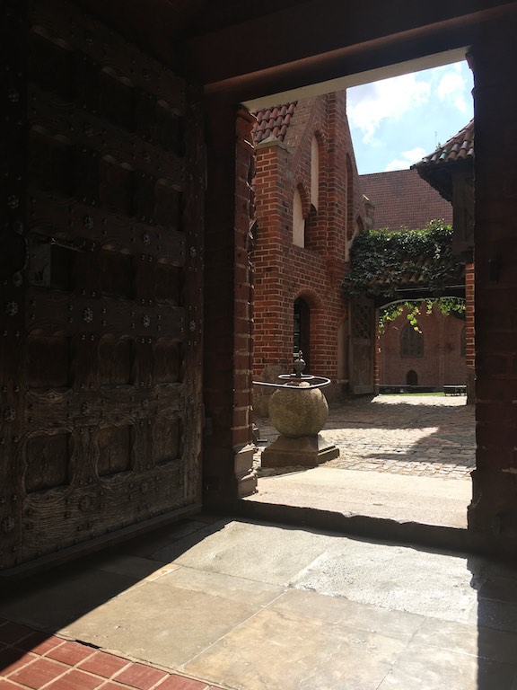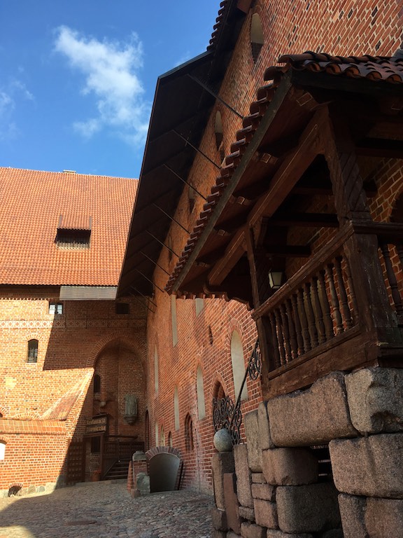 Przyjechaliśmy do Malborka wieczorem i mieliśmy nadzieję na zwiedzanie zamku nocą. Niestety okazało się, że przyjechaliśmy zbyt późno i zamek zakończył już możliwość wejścia. Udało się znaleźć nocleg dokładnie po przeciwnej stronie drogi i dzięki temu następnego dnia byliśmy u bram średniowiecznej twierdzy już o 8:30. To wielka zaleta móc wejść do muzeum przed tłumami zwiedzających. W większości pomieszczeń byliśmy sami. Można by powiedzieć, że trafiło się nam zwiedzanie w luksusie. Bez nieuważnych, przepychających się ludzi przemykających bezpośrednio przed obiektywem aparatu, który właśnie miał „trzasnąć” najpiękniejsze zdjęcie 🙂