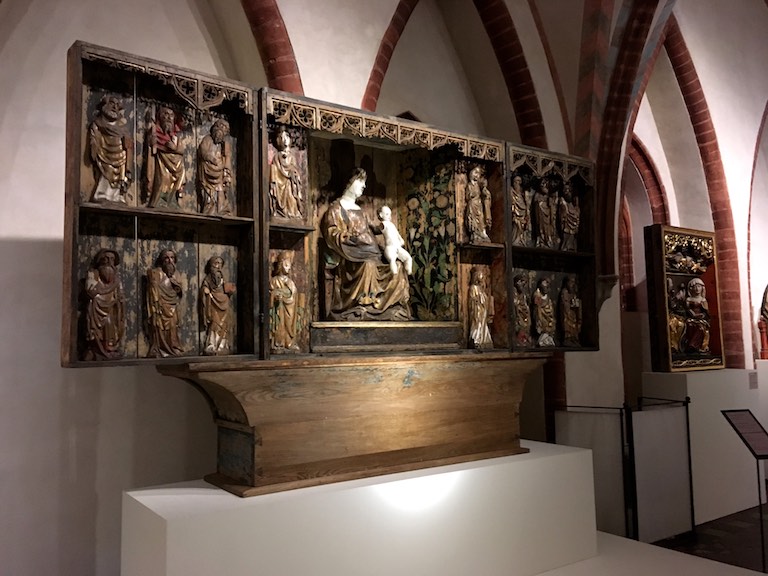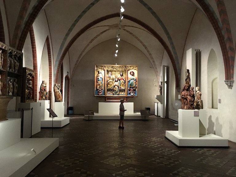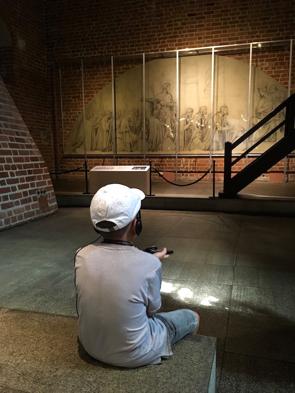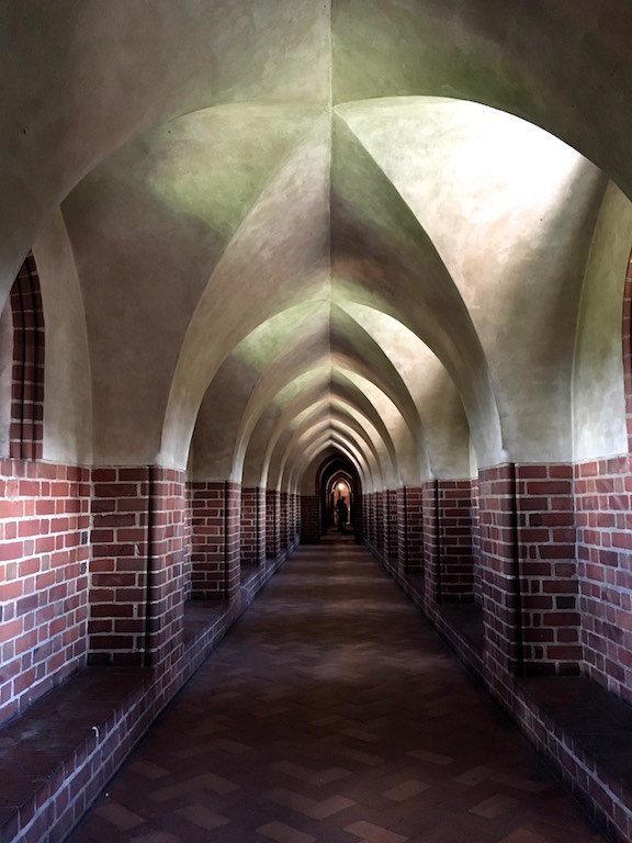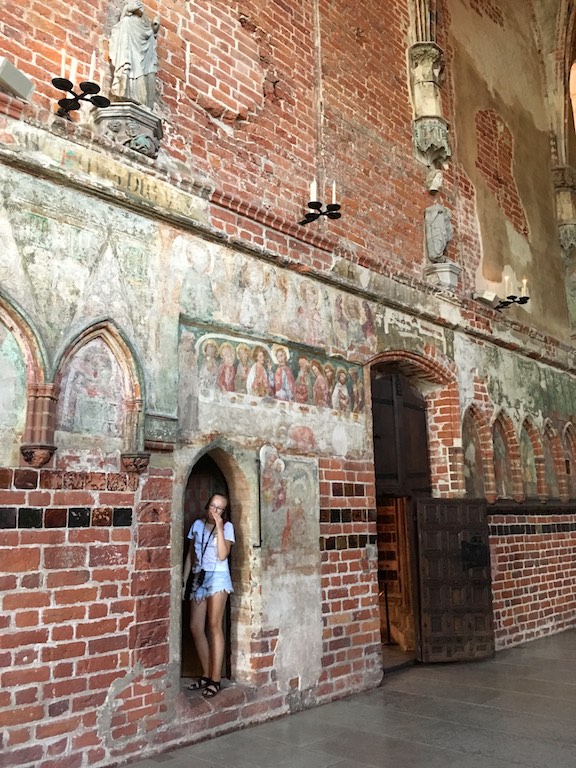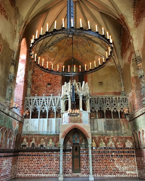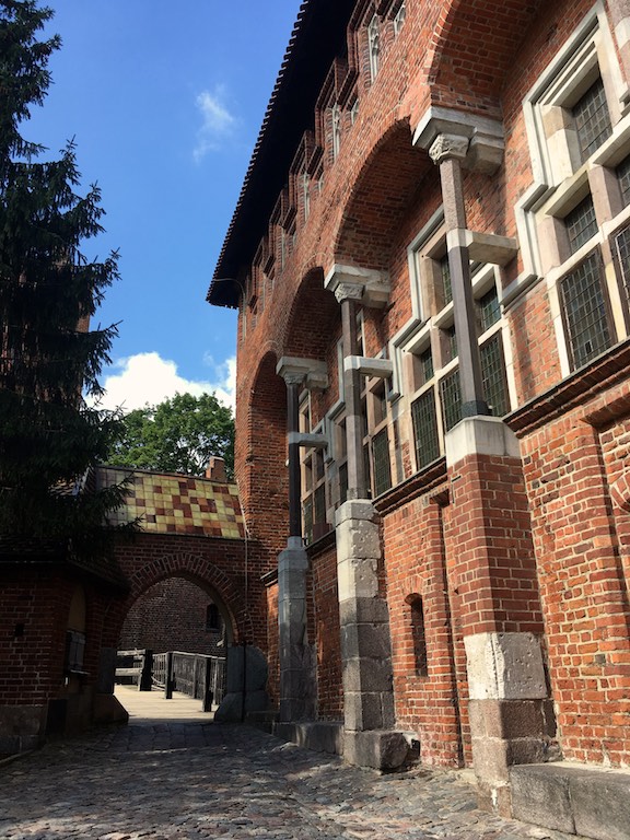 Przyjechaliśmy do Malborka wieczorem i mieliśmy nadzieję na zwiedzanie zamku nocą. Niestety okazało się, że przyjechaliśmy zbyt późno i zamek zakończył już możliwość wejścia. Udało się znaleźć nocleg dokładnie po przeciwnej stronie drogi i dzięki temu następnego dnia byliśmy u bram średniowiecznej twierdzy już o 8:30. To wielka zaleta móc wejść do muzeum przed tłumami zwiedzających. W większości pomieszczeń byliśmy sami. Można by powiedzieć, że trafiło się nam zwiedzanie w luksusie. Bez nieuważnych, przepychających się ludzi przemykających bezpośrednio przed obiektywem aparatu, który właśnie miał „trzasnąć” najpiękniejsze zdjęcie 🙂