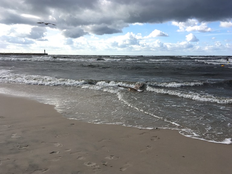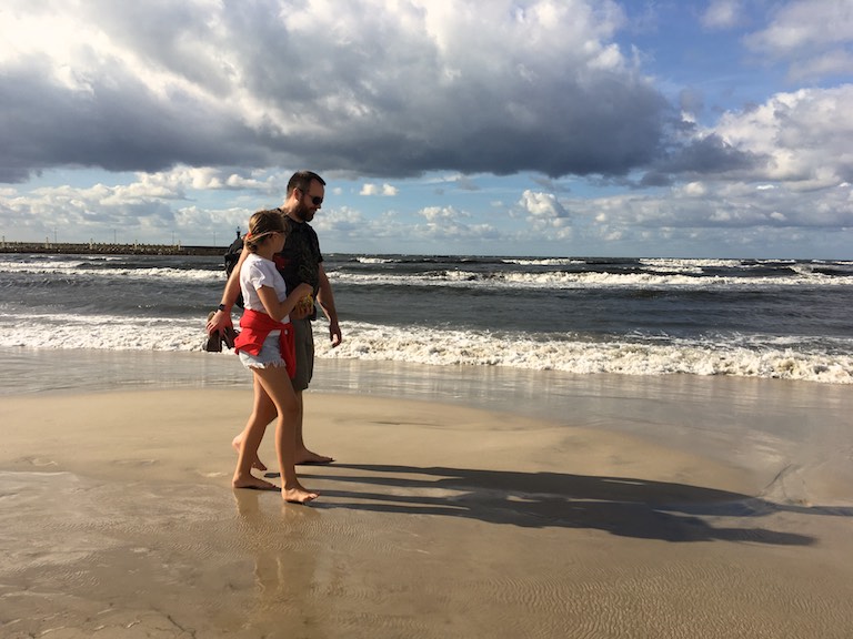 Z Malborka nad Morze Bałtyckie już blisko więc nie mogliśmy ominąć okazji na obiad z szumem morskich fal w tle. Łeba ugościła nas pyszną zupą rybną i dorszem. Warto było czekać na ich niebiański smak. Potem jeszcze spacer plażą i spokojnie można było zakończyć weekend. I to było coś czego niby nie planowaliśmy, ale pozwoliło nam poczuć radość i wakacyjny jeszcze wiatr we włosach 🙂