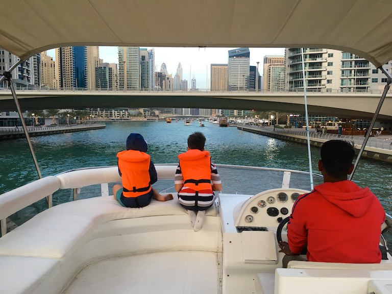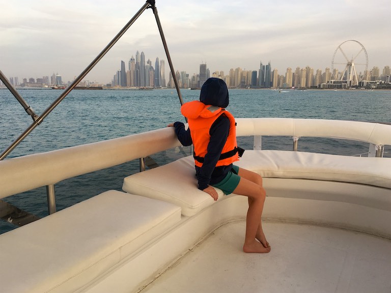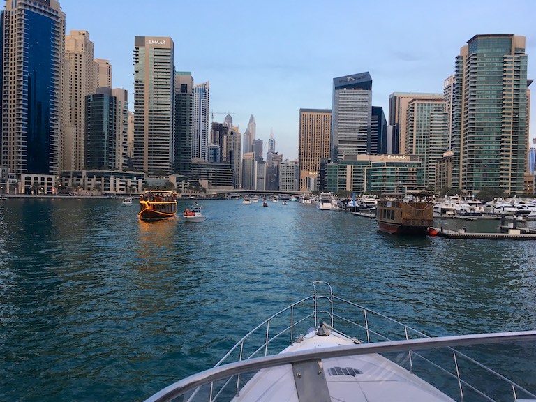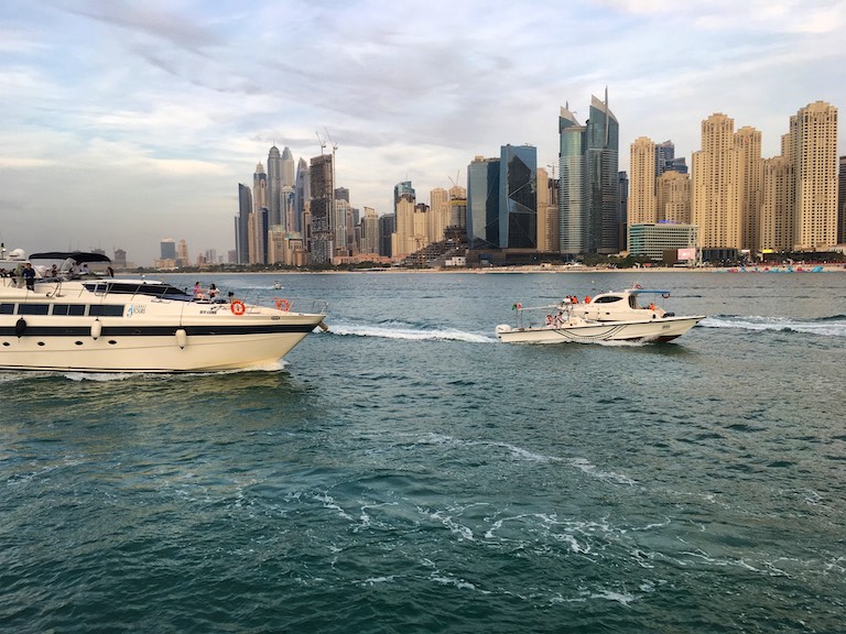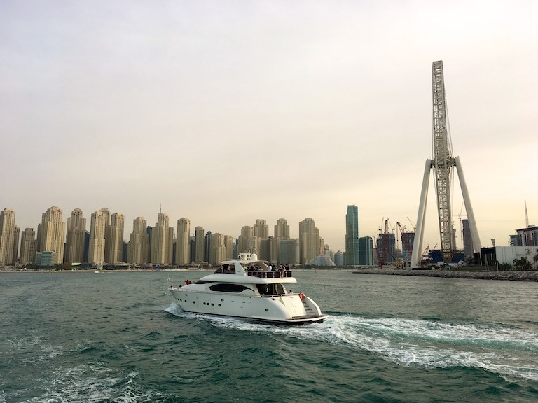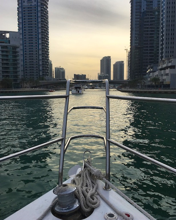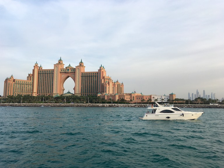 Na zakończenie dnia udaliśmy się do Dubai Marina, wypożyczyliśmy jacht i przepłynęliśmy się po Zatoce Perskiej do The Palm Jumeirah. The Palm Jumeirah to promenada zbudowana w kształcie palmy, którą zostawiam sobie do zwiedzenia podczas kolejnej wizyty w Dubaju.