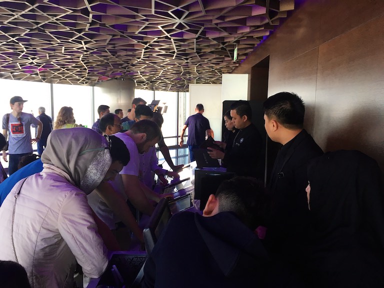 Zaraz po wyjściu z windy zwiedzający są sprytnie przechwytywani przez obsługę do pamiątkowej fotografii. Chwilę później dokonywany jest sprytny montaż fotek, który na naszych oczach powstawał w takim tempie, że nie mogłam nadziwić się wprawie, z jaką obsługująca nas pani obrabiała fotografie.