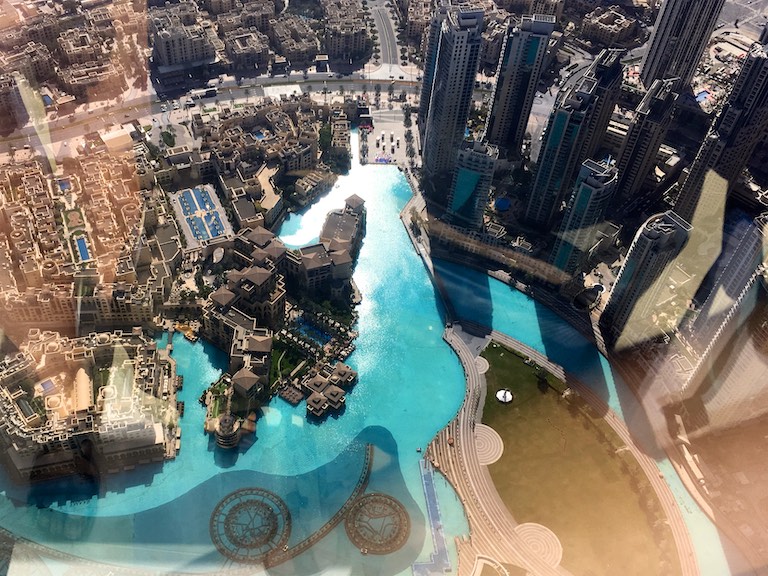 Z góry możemy podziwiać The Dubai Mall, Souk Al Bahar no i oczywiście The Dubai Fountain
