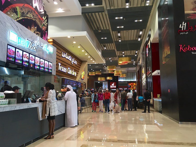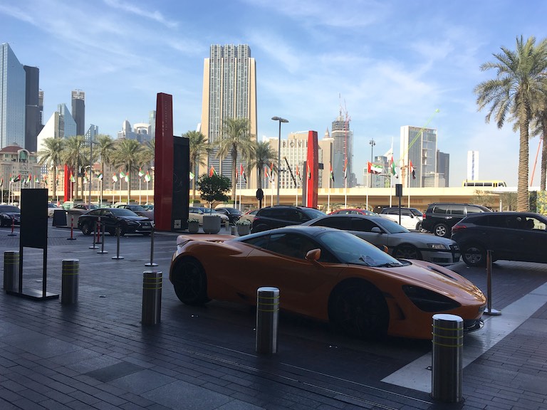 Przed wejściem do Dubai Mall-u parkuje tyle pięknych samochodów, że jeśli się podróżuje z przedstawicielem męskiego świata z pewnością, gdy wyjdzie z Mallu nie będzie miał ochoty na ponowne wejście do budynku. Więc kobietki – zakupy planujcie wcześniej 🙂