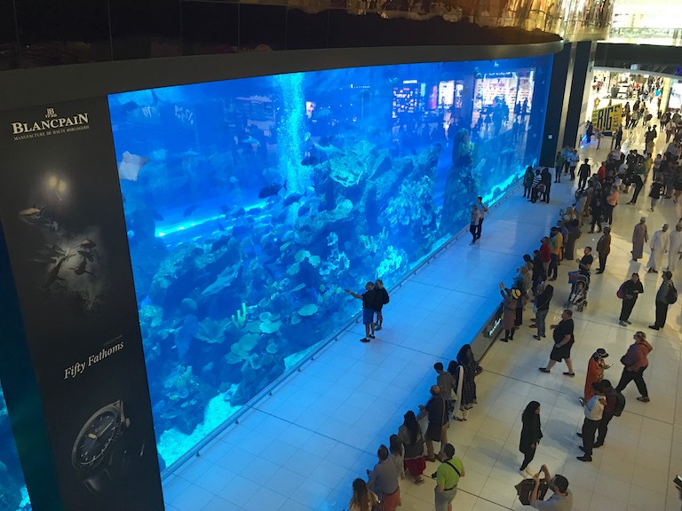Dubai Mall jest ogromny. Prócz fantazyjnie urządzonych sklepów znalazło się tu miejsce na Dubai Aquarium