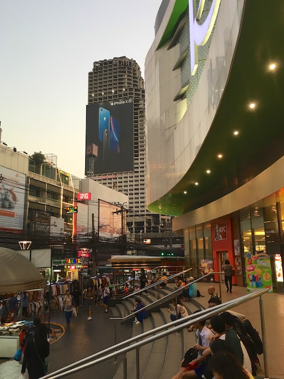 Wybór hotelu w Bangkoku jest szalenie ważny. Jest to tak zakorkowane miasto, że bliskie odległości mogą się wydać szalenie odległymi. Nas korki szczęśliwie omijały 🙂 Nasz hotel połączony był z ogromnym sklepem i z jednej strony mieliśmy pełne zaplecze spożywcze a z drugiej mogliśmy pooglądać jak wygląda taka tajska galeria handlowa 🙂 Na najwyższym piętrze mieściła się stołówka z tajskim jedzeniem. Za grosze mogliśmy posmakować domowych tajskich smaków.