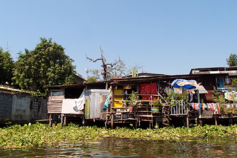 Przewodniczka w plan zwiedzania sprytnie wpasowała nam godzinny rejs statkiem po kanałach zlokalizowanych w najbiedniejszej części Bangkoku.