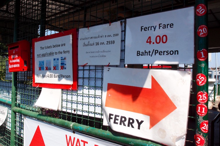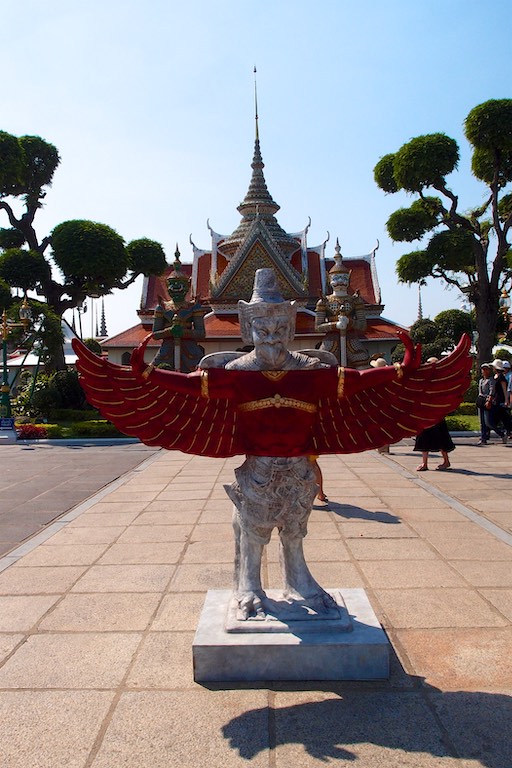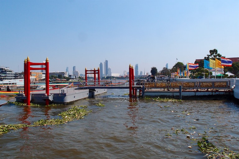 Świątynię Świtu – Wat Arun podziwialiśmy z zewnątrz, zatrzymując się na pamiątkowe zdjęcie na kilka chwil. Jest to jeden z najwyższych świątynnych budynków, który symbolizuje legendarną górę Meru. W mitologii buddyjskiej uważana była za centrum wszechświata. Z tego miejsca ruszyliśmy promem na drugą stronę rzeki. Brzuchy wskazywały jednoznacznie porę lunchu więc wiadomo jaki był kolejny punkt wycieczki 🙂