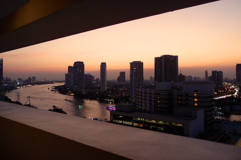 Widok z naszego balkonu na Bangkok hipnotyzował. Nieważne czy był to świt, dzień czy też późna noc. Mogliśmy gapić się na niego bez końca.