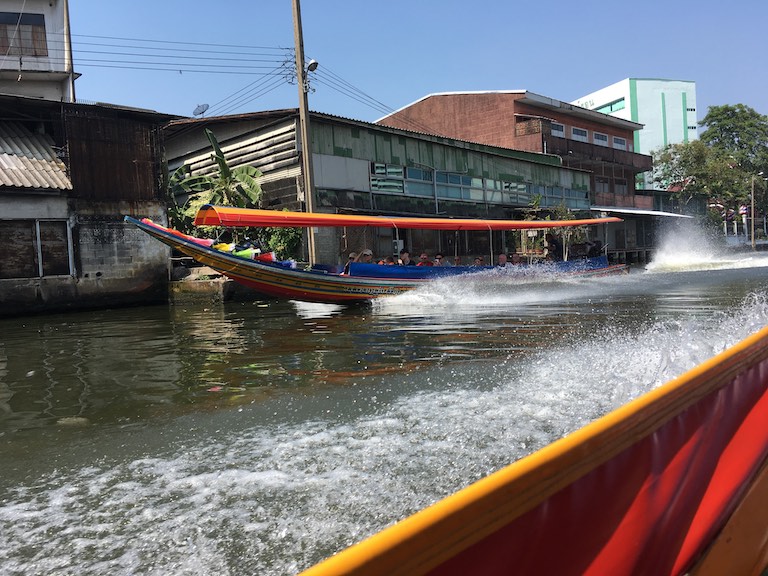 Przewodniczka w plan zwiedzania sprytnie wpasowała nam godzinny rejs statkiem po kanałach zlokalizowanych w najbiedniejszej części Bangkoku.