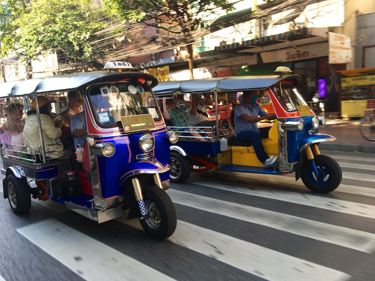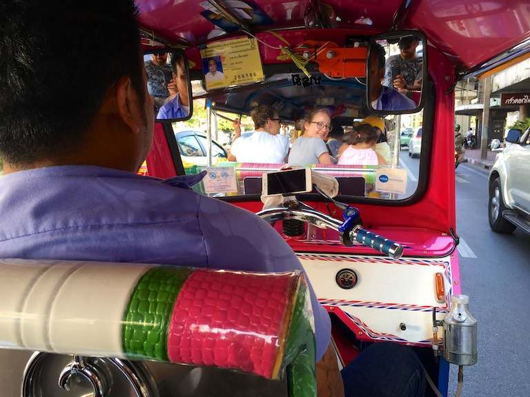 Prawdziwą atrakcją okazał się przejazd Tuk -Tukami! Sprawnie pędziły między autami i skuterami wciskając się bezlitośnie w każdą nawet najmniejszą lukę w korku. Przejazd z adrenaliną 🙂 a mimo tych szaleńczych prędkości nigdzie nie widzieliśmy żadnej stłuczki, żadnego wypadku i żadnych nerwów na drodze. I to jest chyba coś czego warto nauczyć się od Tajów. Ruch drogowy był naprawdę płynny.