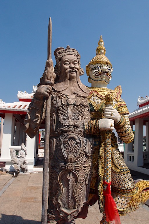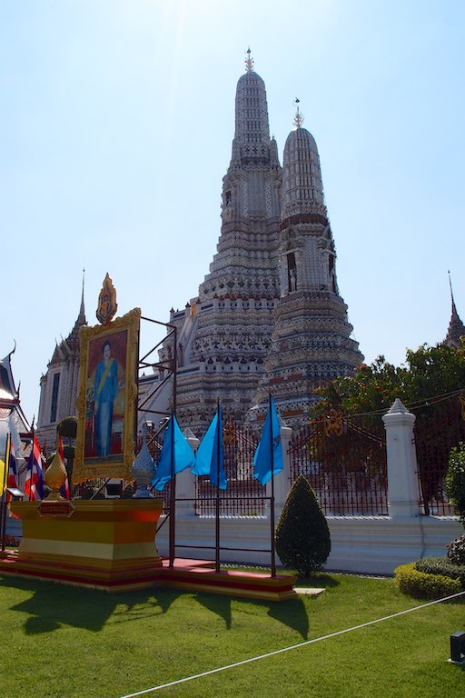 Świątynię Świtu – Wat Arun podziwialiśmy z zewnątrz, zatrzymując się na pamiątkowe zdjęcie na kilka chwil. Jest to jeden z najwyższych świątynnych budynków, który symbolizuje legendarną górę Meru. W mitologii buddyjskiej uważana była za centrum wszechświata. Z tego miejsca ruszyliśmy promem na drugą stronę rzeki. Brzuchy wskazywały jednoznacznie porę lunchu więc wiadomo jaki był kolejny punkt wycieczki 🙂