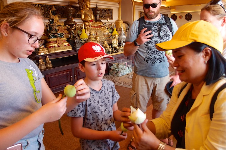 Planowaliśmy w nim spędzić dwie noce więc naturalnym się wydało zaplanować całodzienny bieg przez miasto. Gdybyśmy organizowali to sami to wydaje mi się, że nie udałoby się nam tyle zobaczyć. Tym razem również z pomocą przyszli nam Asian Divers i wierzcie lub nie, ale w 34 stopniowym upale, wraz z dziećmi udało się nam zobaczyć wszystko co chcieliśmy a dzieci do końca dotrzymywały nam kroku. To pewnie zasługa Janny, która była naszym przewodnikiem i doskonale wyczuwała potrzeby dzieci. Brawo wielkie dla niej!