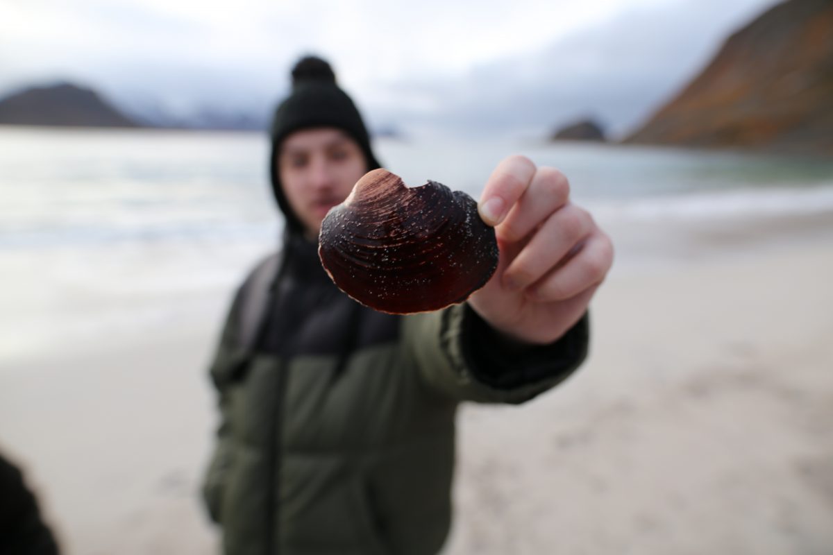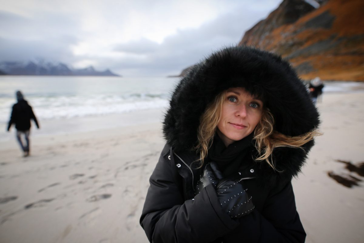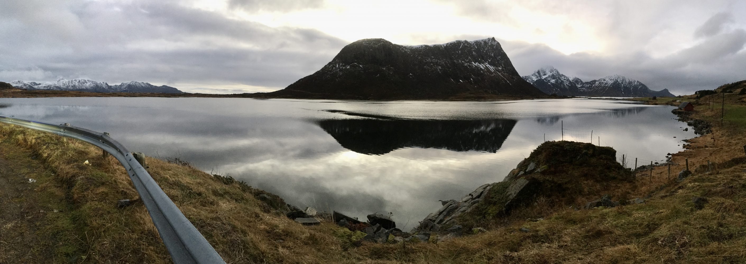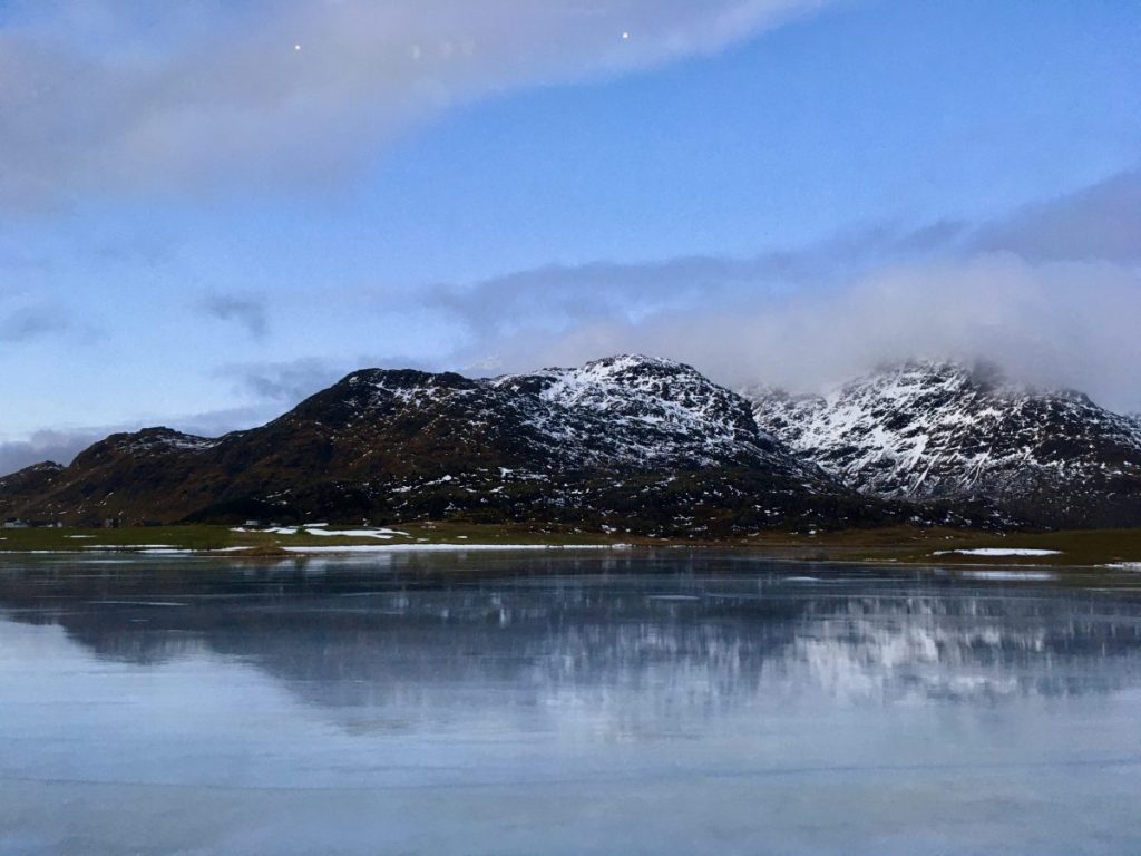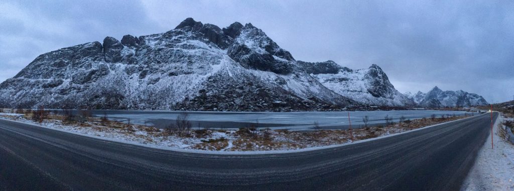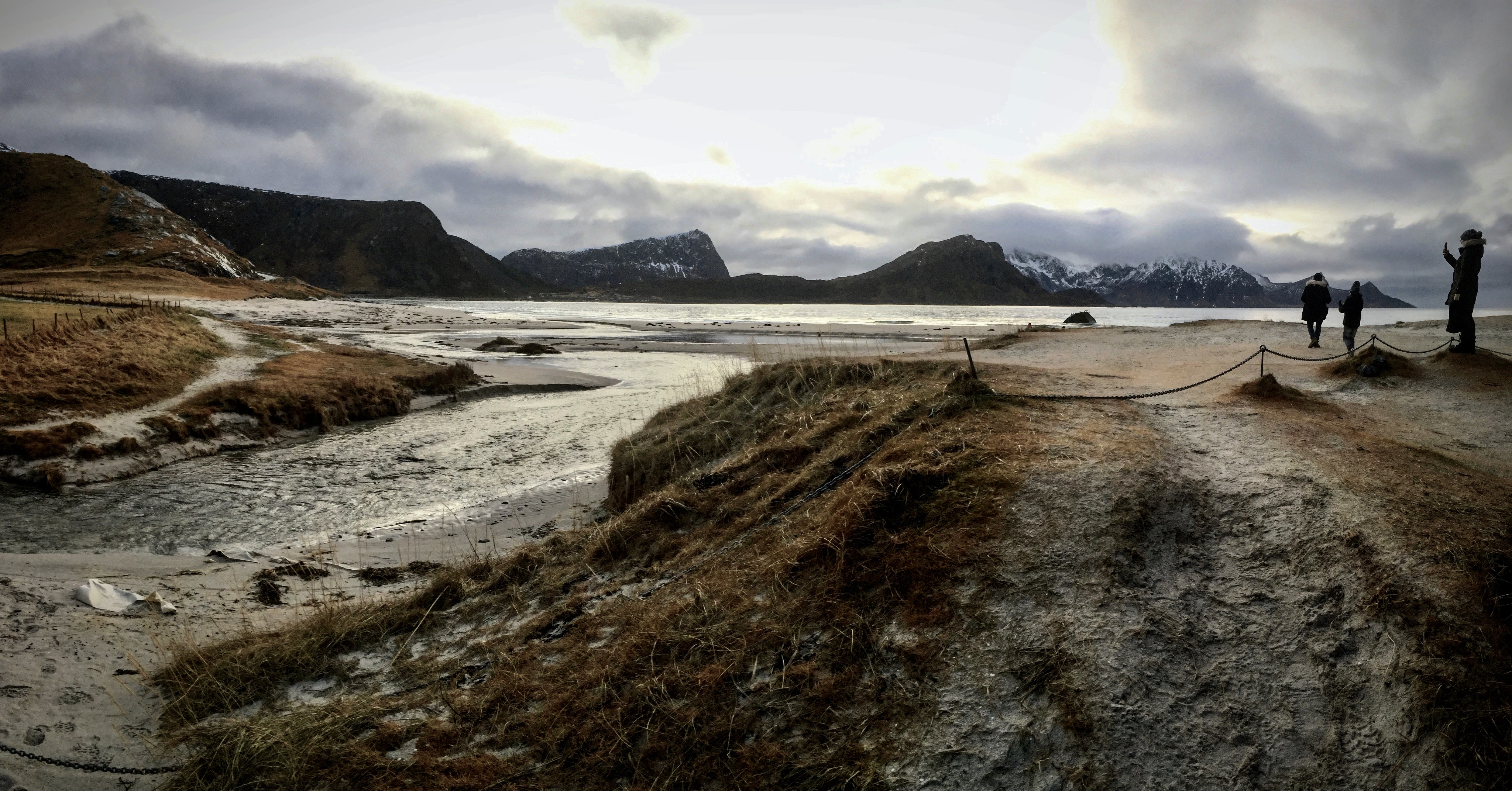 Korzystając z tego, że wynajęliśmy na lotnisku samochód jak i z tego, że nie padał deszcz a jeszcze było dość widno pojechaliśmy na plażę Hauklandstranda. Hauklandstranda znajduje się w środkowej części Lofotów, to północna część Vestvågøy, tylko 10 minut jazdy samochodem od Leknes. Plaża została wcześniej nazwana najpięknięszą plażą w Norwegii. Jest idealna ze względu na lokalizację, ponieważ można zaparkować tuż przy plaży i pospacerować a latem z pewnością można wykąpać się z pięknym widokiem na fiordy.