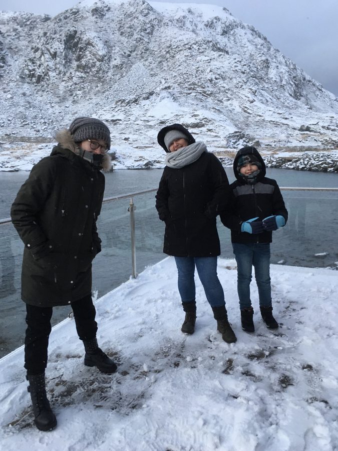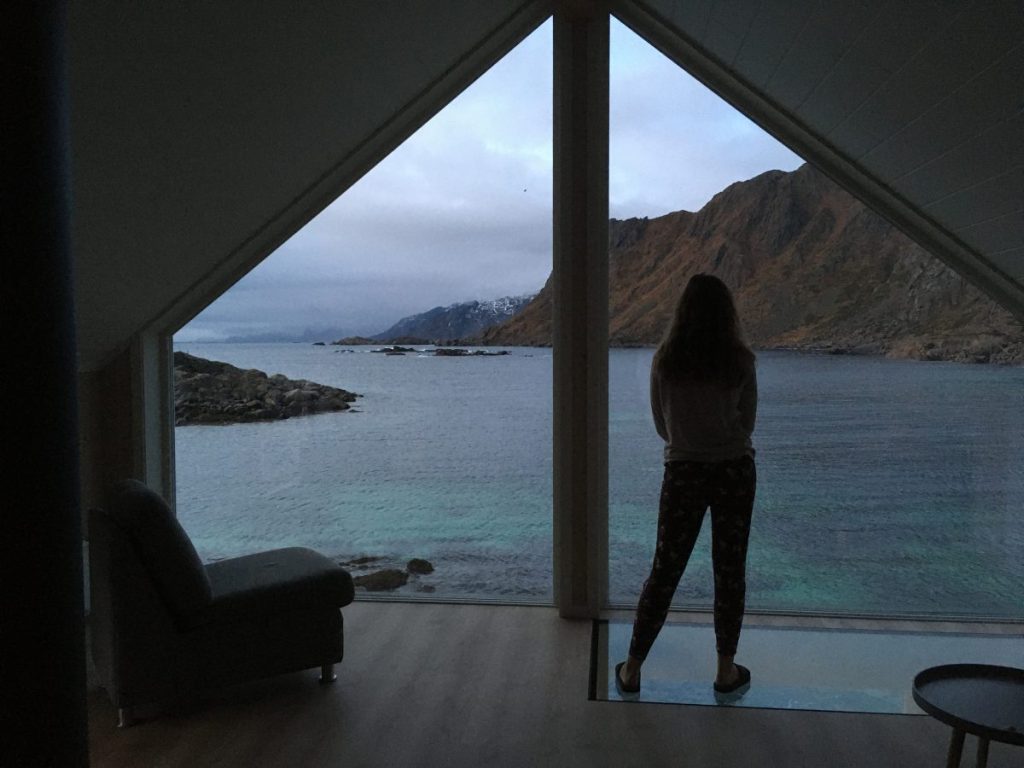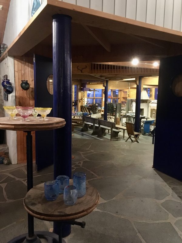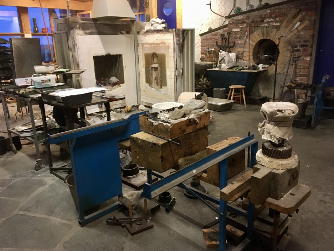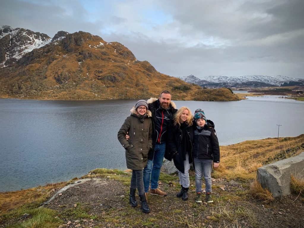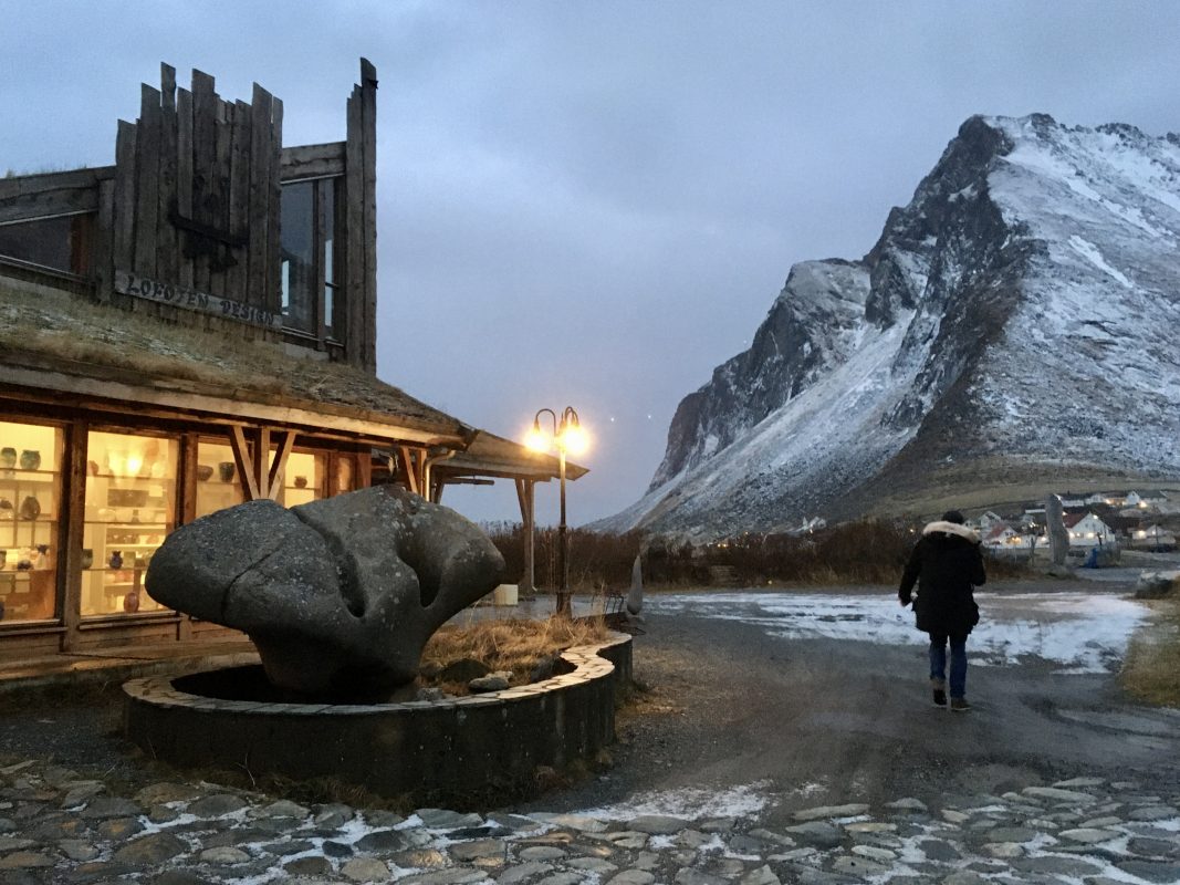 Gdy tylko wstał nowy dzień , spakowaliśmy się do auta i pojechaliśmy do Vikten, gdzie tuż przy linii brzegu u podnóża gór znaleźliśmy maleńką hutę szkła Glasshytta. Oczywiście był to ostatni dzień 2019 roku i było zamknięte dla zwiedzających. Dzięki temu, że zaglądnęliśmy jednak do środka okazało się, że właściciel, który jednocześnie był dmuchaczem szkła był wewnątrz 🙂 takie oto szczęście w nieszczęściu. Pootwierał dla nas wszystkie wnętrza. Dzieci mogły pooglądać szklane cuda i linię produkcyjną. Dowiedzieliśmy się również od niego, że w okolicy jest dużo Polaków i na przykład szkoła w Leknes budowana była przez Polaków.