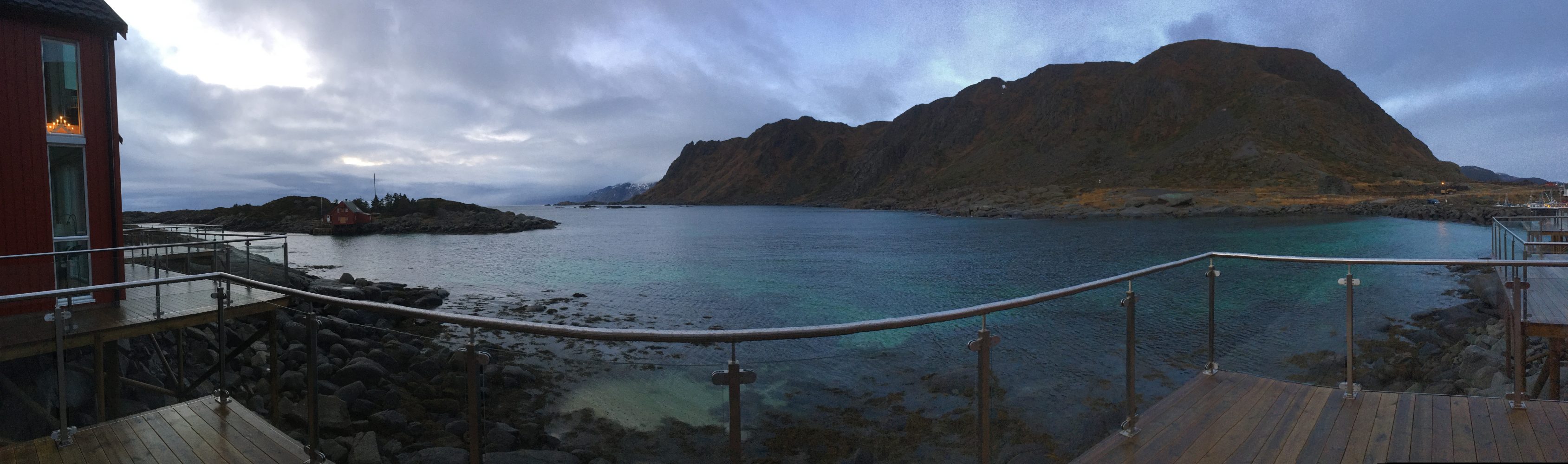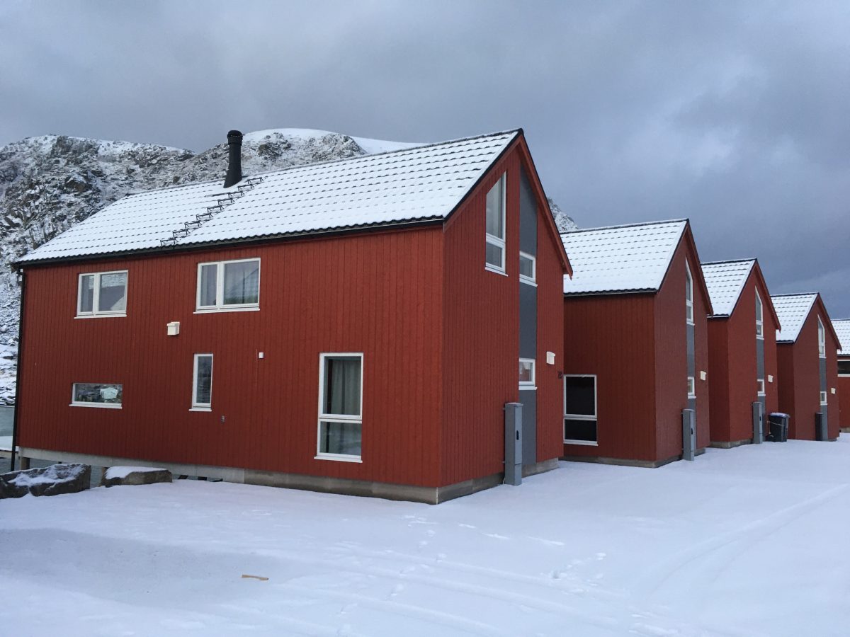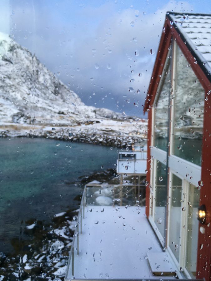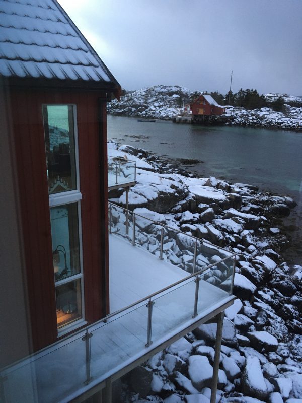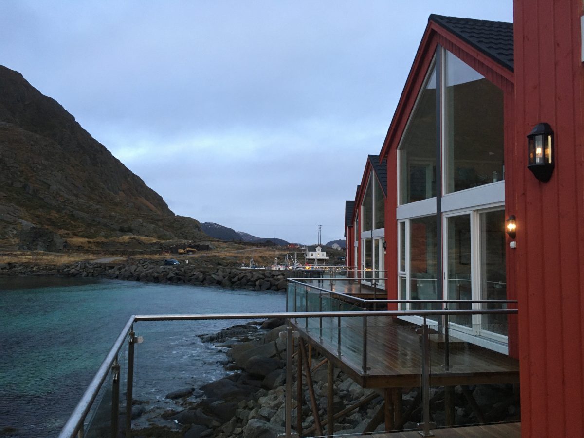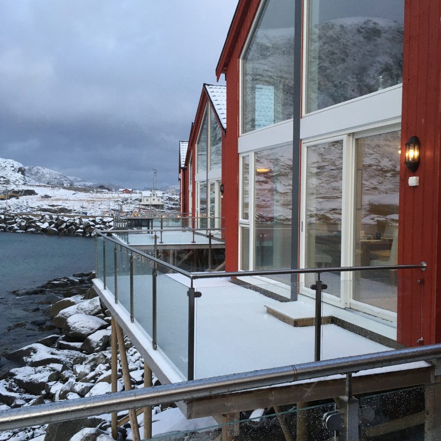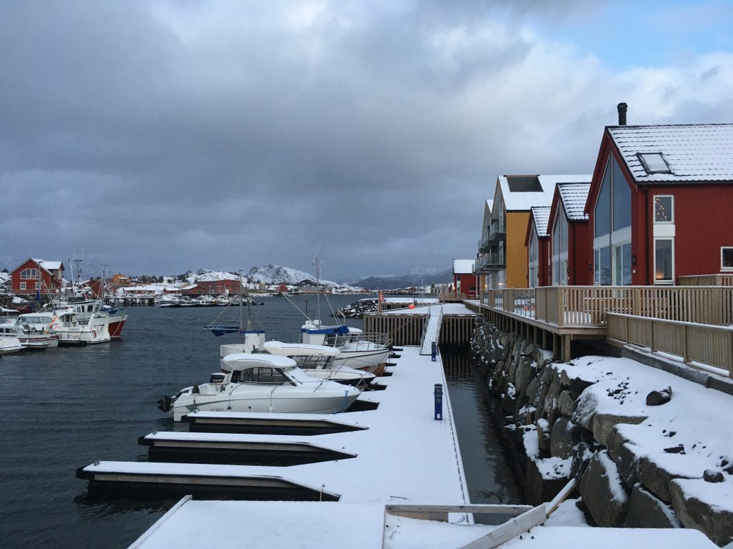 Ballstad, mała wioska rybacka w archipelagu Lofotów. Urzeka czerwonymi chatkami i wodą wdzierającą się w głąb lądu z każdej strony wybrzeża. Płytki poziom morza tuż przy naszym domku zachęcił fokę by podpłynąć bliżej. Mogliśmy z naszego tarasu przyglądać się jak bawi się w wodorostach. Do tej pory widzieliśmy foki jedynie w ZOO a tu taka atrakcja tuż pod oknami.