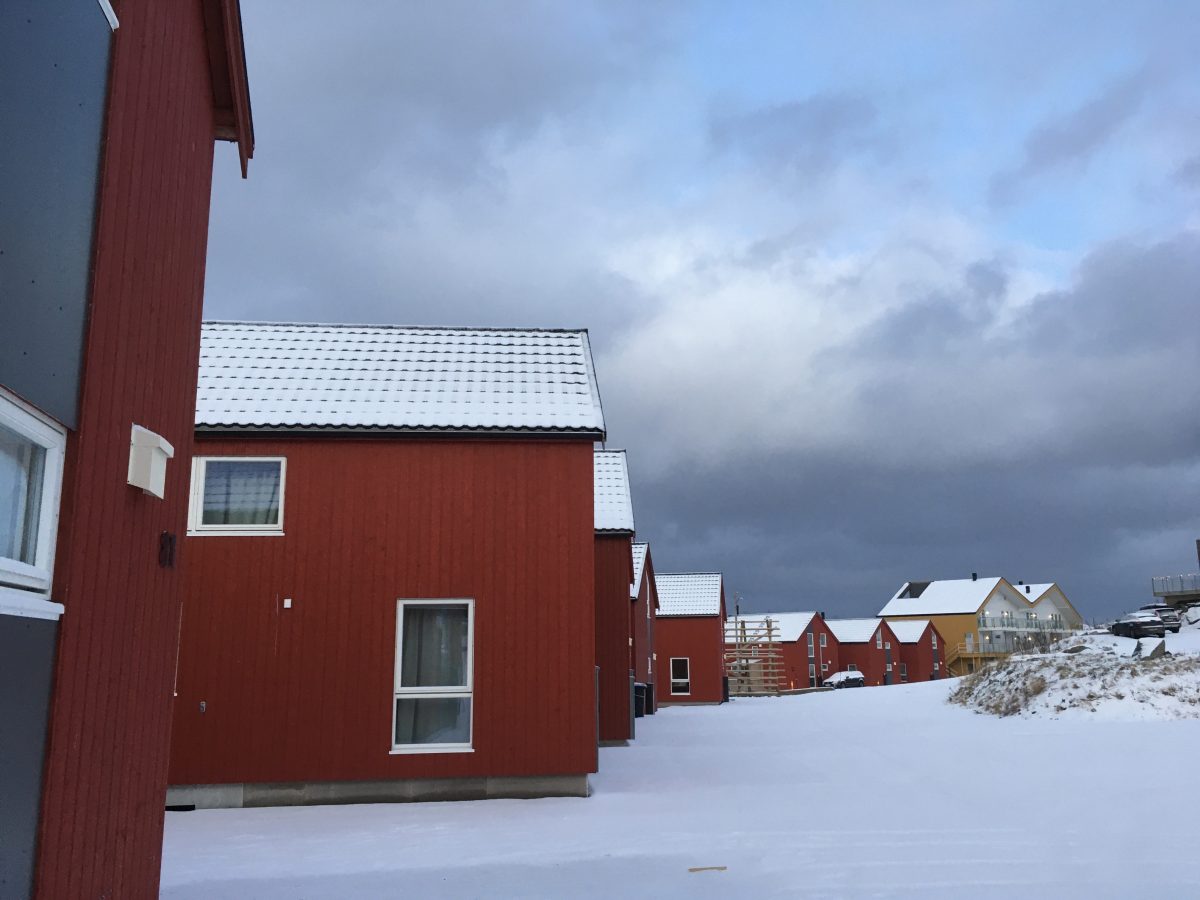 Zima na północy Norwegii jest raczej przygnębiająca. Widno jest kilka godzin w ciągu dnia a gdy jeszcze trafi się na pochmurne dni to poczucie nocy siedzące tuż tuż na kołnierzu mocno się wzmaga. Kolejnego dnia w nocy spadł śnieg. Piękny. Biały. Mięciutki. Padał małymi płatkami sporą część nocy. Pierwszy jaki tej zimy widzieliśmy, dlatego radość dzieci była duża. Śnieg grzecznie otulił całą okolicę. Lubię jak jest tak biało. I ta ciszaaaa…. Coś czego w Poznaniu tak brakuje to właśnie ta ciszaaaaa….