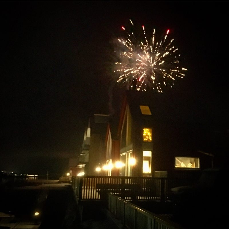 Nasze oko zanotowało jedynie fajerwerki, choć jak się później okazało, aparat fotograficzny był znacznie czulszy i nad fajerwerkami delikatnie zieleniła się zorza. Całe zdjęcie jednak nie nadaje się do prezentacji więc nawet go tu nie zamieszczę 🙂