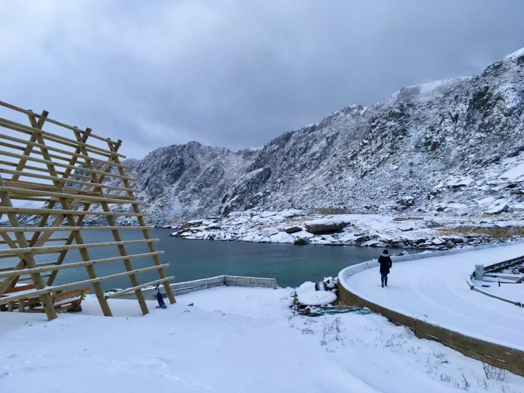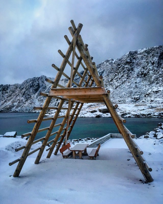 Gdy tylko zrobiło się widno pojechaliśmy zobaczyć Muzeum Lofotr, niestety koniec roku nie jest zbyt łaskawy dla fanów muzeów i ostatecznie pocałowaliśmy klamkę bo muzeum zamknięte było na trzy spusty. To chyba znak, że trzeba tu wrócić latem 🙂 Z chęcią podejmę wyzwanie raz jeszcze. W tym muzeum można poczuć się jak Wiking. Można spróbować jedzenia wikingów i przeżyć dzień tak jakby przenosząc się do tamtych lat. Wykopaliska odkryły pozostałości najdłuższego budynku Wikingów, jaki kiedykolwiek znaleziono w Norwegii albo nawet w pozostałej części Europy. Powiew historii można tu zatem poczuć bardzo wyraźnie. Nie udało się nam niestety tego zobaczyć, ale pozostawiam ten punkt na liście miejsc, które w przyszłości odwiedzę 🙂
