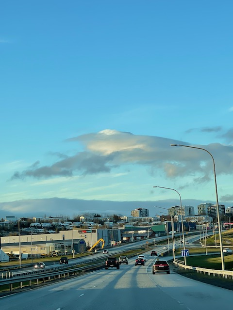 Trochę martwiłam się pogodą bo prognozy nie były optymistyczne, ale chyba mamy do niej szczęście. Zamiast deszczu lotnisko w Keflaviku przywitało nas pogodnym niebem.