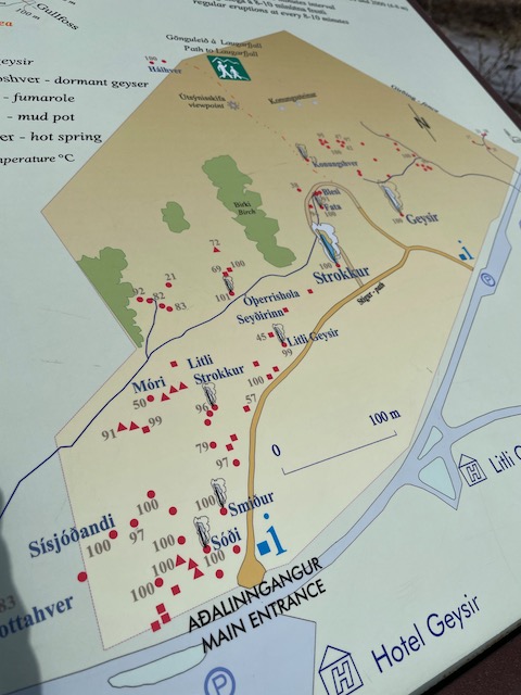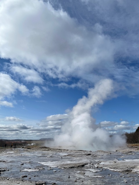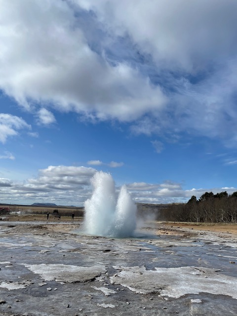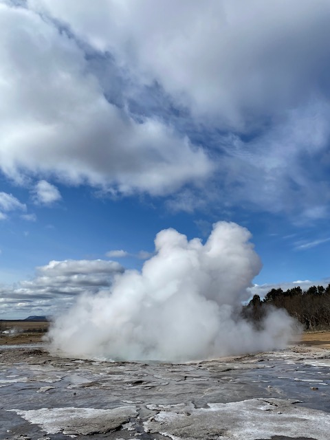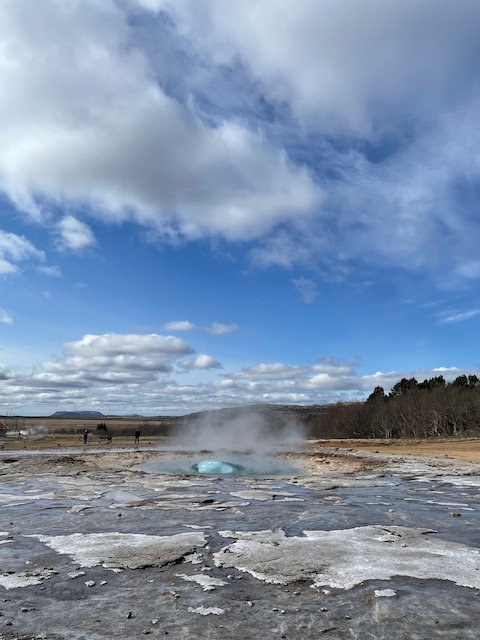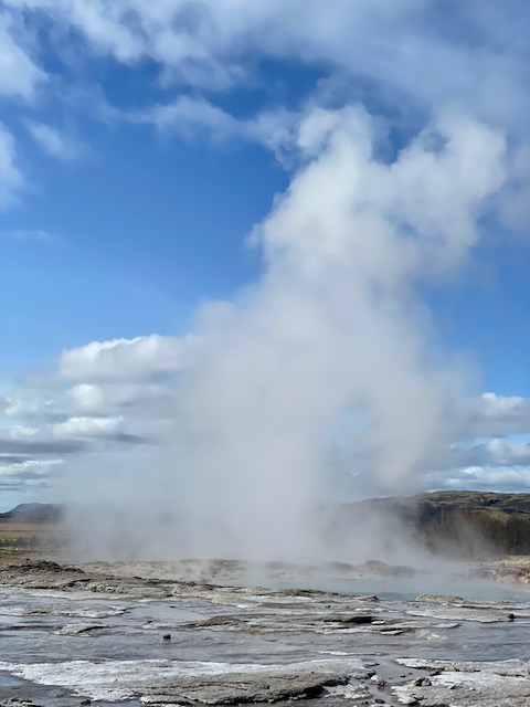 Gejzer widać już z drogi i wystarczy przeznaczyć na niego około 20 minut. Pierwszy wybuch przestraszył nas bo w sumie nie wiedzieliśmy czego się spodziewać. Można obejść go i obserwować z każdej strony.