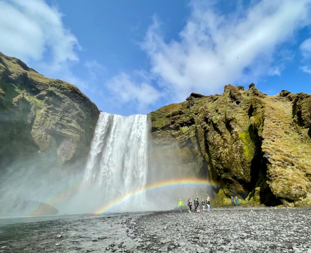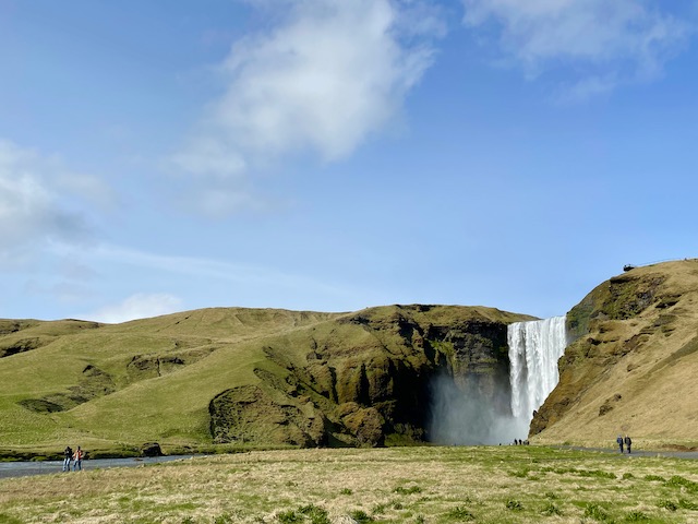 Ostatni wodospad jaki oglądaliśmy to Skógar. Można podziwiać go z góry i z poziomu wody.
