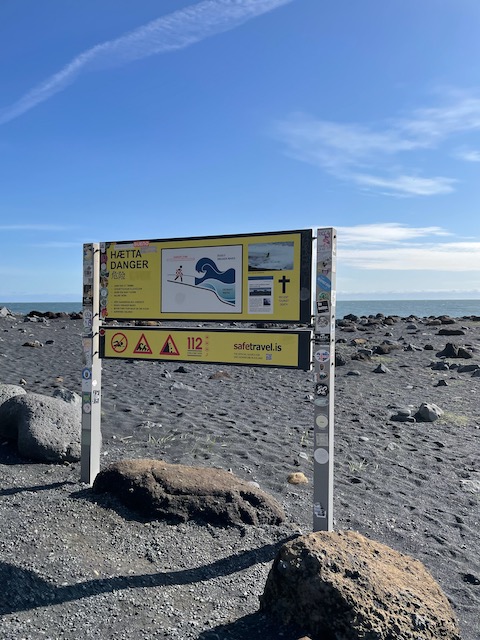 Zostawiając wodospady w tyle pojechaliśmy na spotkanie z czarną plażą Reynisfjara niedaleko miejscowości Vik. Plaża okryta jest złą sławą przez ilość śmierci wśród turystów, którzy w pogoni za najlepszym zdjęciem pomijają potęgę oceanu i giną wśród zdradzieckich fal. Znaki przed wejściem informują w jaki sposób należy zachowywać się na plaży. Nigdy nie można odwracać się tyłem do fal i trzeba mieć je zawsze w zasięgu wzroku, szczególnie podczas przypływu i złej pogody.
