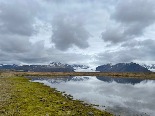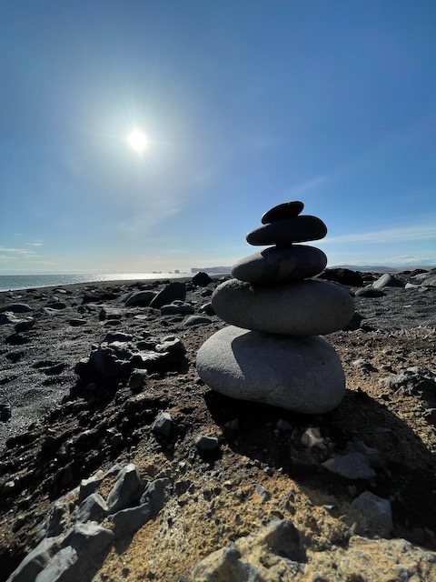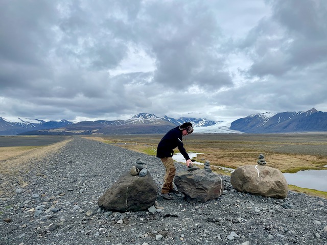 Z Vík í Mýrdal pojechaliśmy dalej do celu naszej podróży. Po drodze zatrzymaliśmy się by z daleka pooglądać lodowiec, ułożyliśmy stosik z kamieni i ruszyliśmy dalej.
