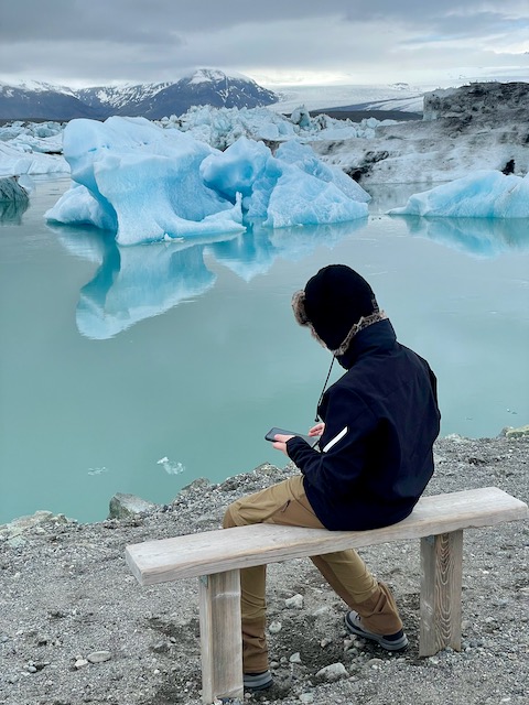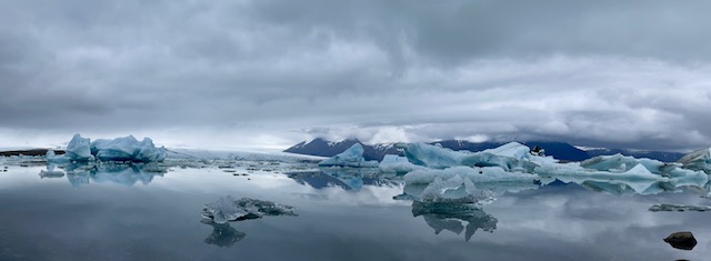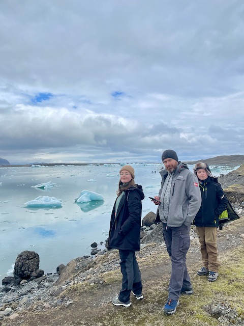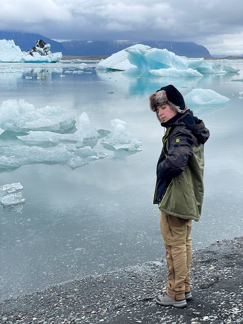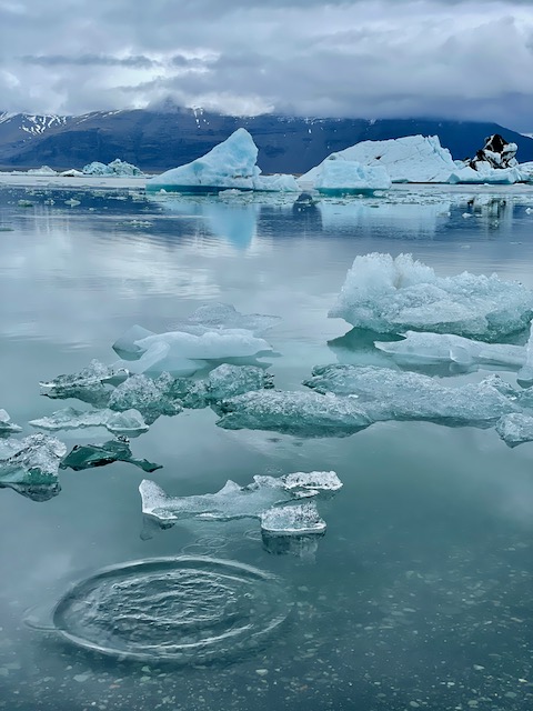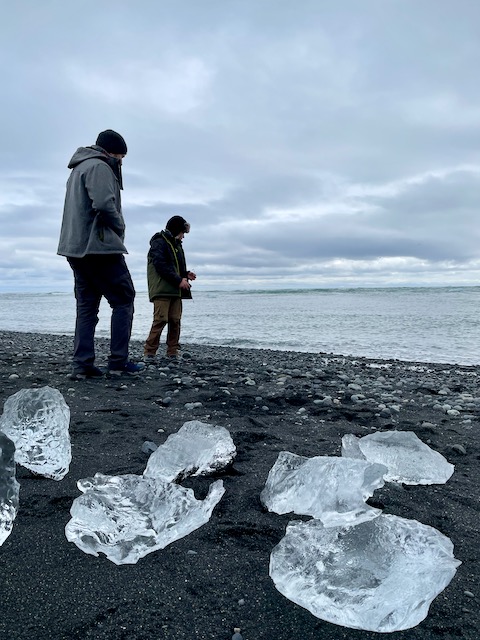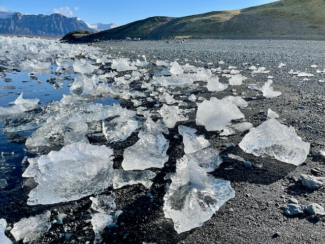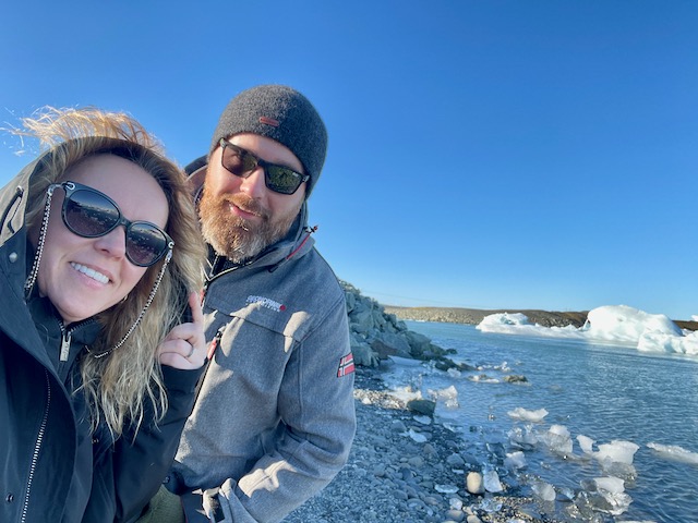 Gdy dzieci jeszcze spały, pojechaliśmy jeszcze raz nad zatokę lodowcową, żeby przy porannym świetle zobaczyć mieniące się bloki lodu. Z widoku, który podziwialiśmy poprzedniego dnia niewiele zostało bo słońce rozpuściło większość wielkich brył. Zastaliśmy zupełnie inny widok. Gdybym jednak miała polecać to bardziej urzekające kolory mogliśmy obserwować przy zachmurzonym niebie. Wszystkie kolory niebieskiego mieszały się z bielą i turkusem. Dla moich oczu – magia!