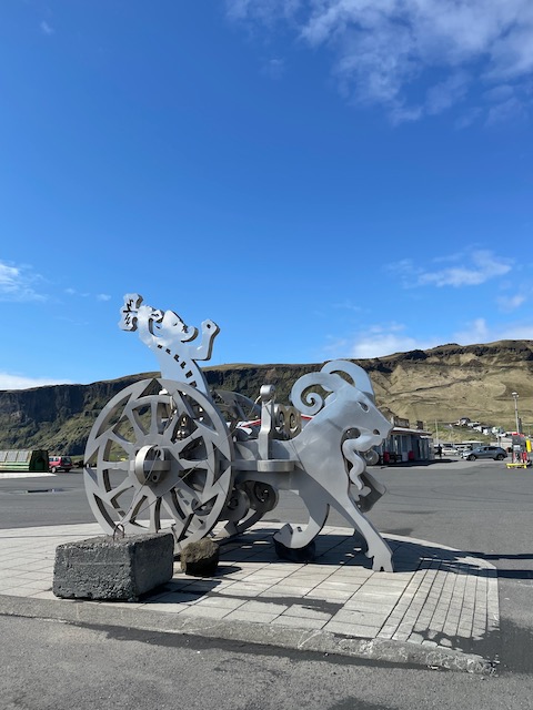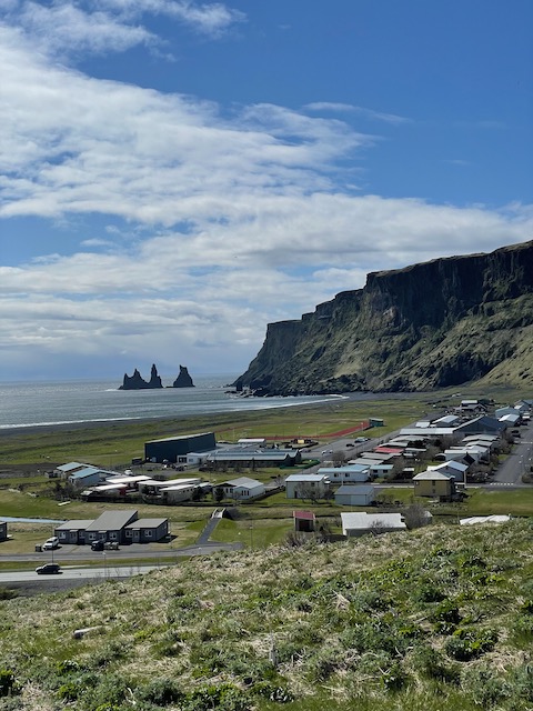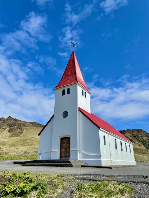 Vik to typowa wioska, którą zamieszkuje ok 400 osób. Nie sposób ją ominąć bo prowadzi do niej jedna droga. Na wzgórzu ponad miejscowością góruje kościół z czerwonym dachem i jest to zdaje się jedno z najbardziej znanych miejsc w okolicy. Znany nie tylko poprzez swoją urodę, ale też przez to, że w razie wybuchu pobliskiego wulkanu Katla jest to punkt zbiorczy wszystkich osób, które przebywają w pobliżu. W przypadku wybuchu każdy otrzymuje informację o tym co ma ze sobą zabrać i w ciągu kilkunastu minut wszyscy muszą zgromadzić się pod tym właśnie kościołem. O dziwo podczas erupcji wiosce nie zagraża lawa, ale powódź. Katla przykryta jest śniegiem i lodem, który w ciągu kilku minut od wybuchu stopi się, uwalniając olbrzymie ilości wody. Mieszkańcy muszą więc zebrać się na wzgórzu by ocenić, z której strony nadejdzie niebezpieczeństwo i wybrać drogę ucieczki. A tych dróg tak na prawdę nie ma wiele bo jest jedna, za to w dwóch kierunkach. Wybór właściwej jest więc istotny z punktu widzenia przeżycia kataklizmu. Każdy mieszkaniec opuszczając swój dom musi umieścić w oknie dużą żółtą kartę informacyjną na znak, że nie ma nikogo w domu i ratownicy mogą nieść pomoc innym potrzebującym, nie tracąc czasu na przeszukiwaniu opuszczonych domostw. Niebezpieczeństwo wybuchu wulkanu jest wysokie. Katla po raz ostatni wybuchła w 1918 roku i wylaną lawą zmiotła z powierzchni wszystko w południowej części Islandii. Od IX wieku wybuchała aż 21 krotnie i jest aktywnym wulkanem. Świadomość, że obcowaliśmy z taką potęgą może napełniać przerażeniem … bardzo podziwiam wszystkich, którzy mieszkają w sąsiedztwie tego wulkanu.