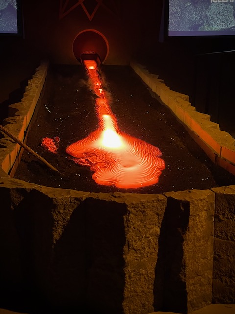 Kierując się w stronę stolicy postanowiliśmy zobaczyć rzecz, której nigdzie indziej byśmy nie zobaczyli. Wykupiliśmy bilety na Lava Show w Vik i były to najlepiej wydane na Islandii pieniądze. Pokaz zaczynał się wystąpieniem geologa, który w bardzo ciekawy i szczegółowy sposób opowiadał o procesie tworzenia się lawy o tym jak stygnie i jakie zniszczenia ze sobą niesie. Opowiadał o drogach ewakuacji podczas erupcji wulkanu, ale również o samym wulkanie ( Katla). Wulkany na Islandii wybuchają tak często, że miejscowi dokładnie wiedzą kiedy to nastąpi i jak mają się zachować. Po występnie każdy uczestnik otrzymał kawałek bazaltu na pamiątkę. Żeby show się udało, lawa musi być podgrzewana w specjalnym piecu przez około 5h. To pokazuje jakie siły drzemią na dnie wulkanu.