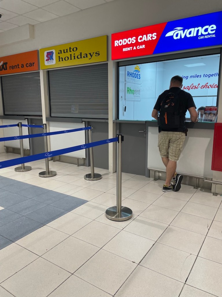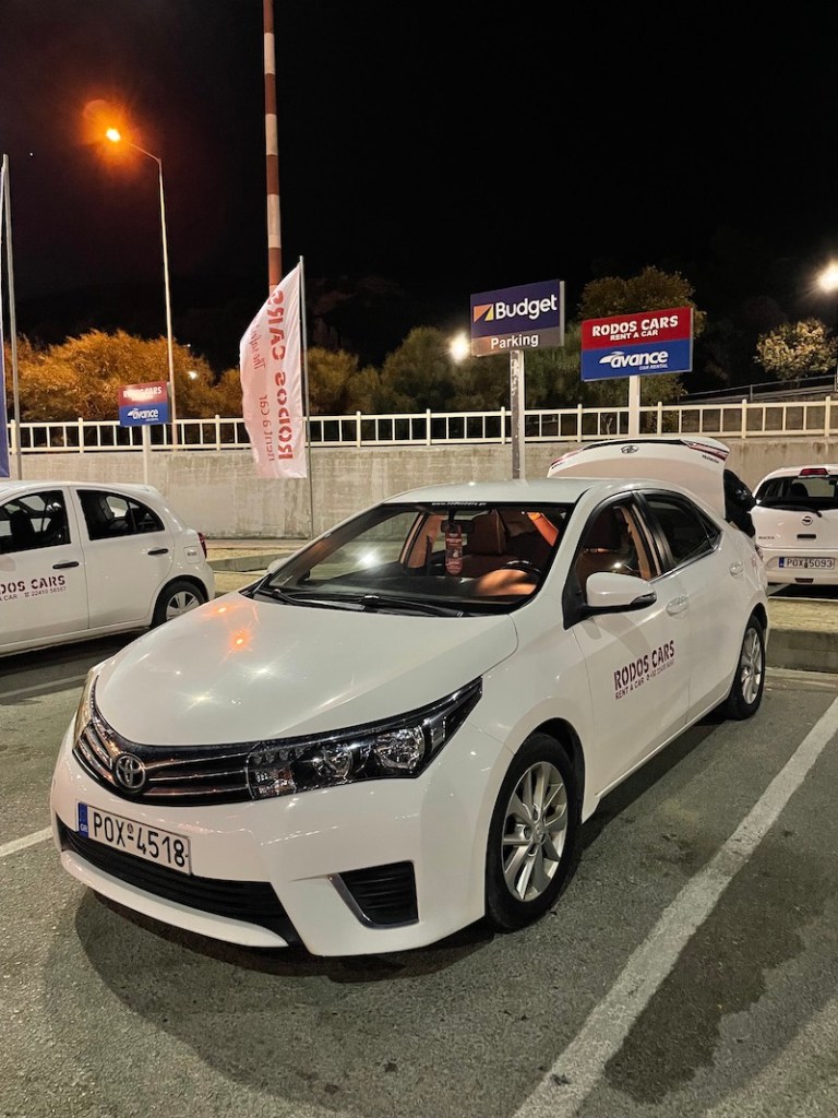 Wynajęcie auta na Rodos w sezonie to jest absolutna konieczność jeśli nie chce się człowiek roztopić w sierpniowym słońcu. Trafiliśmy na tak bezchmurną i bezwietrzną pogodę, że jedynie klimatyzacja w samochodzie mogła nas odpowiednio schłodzić.